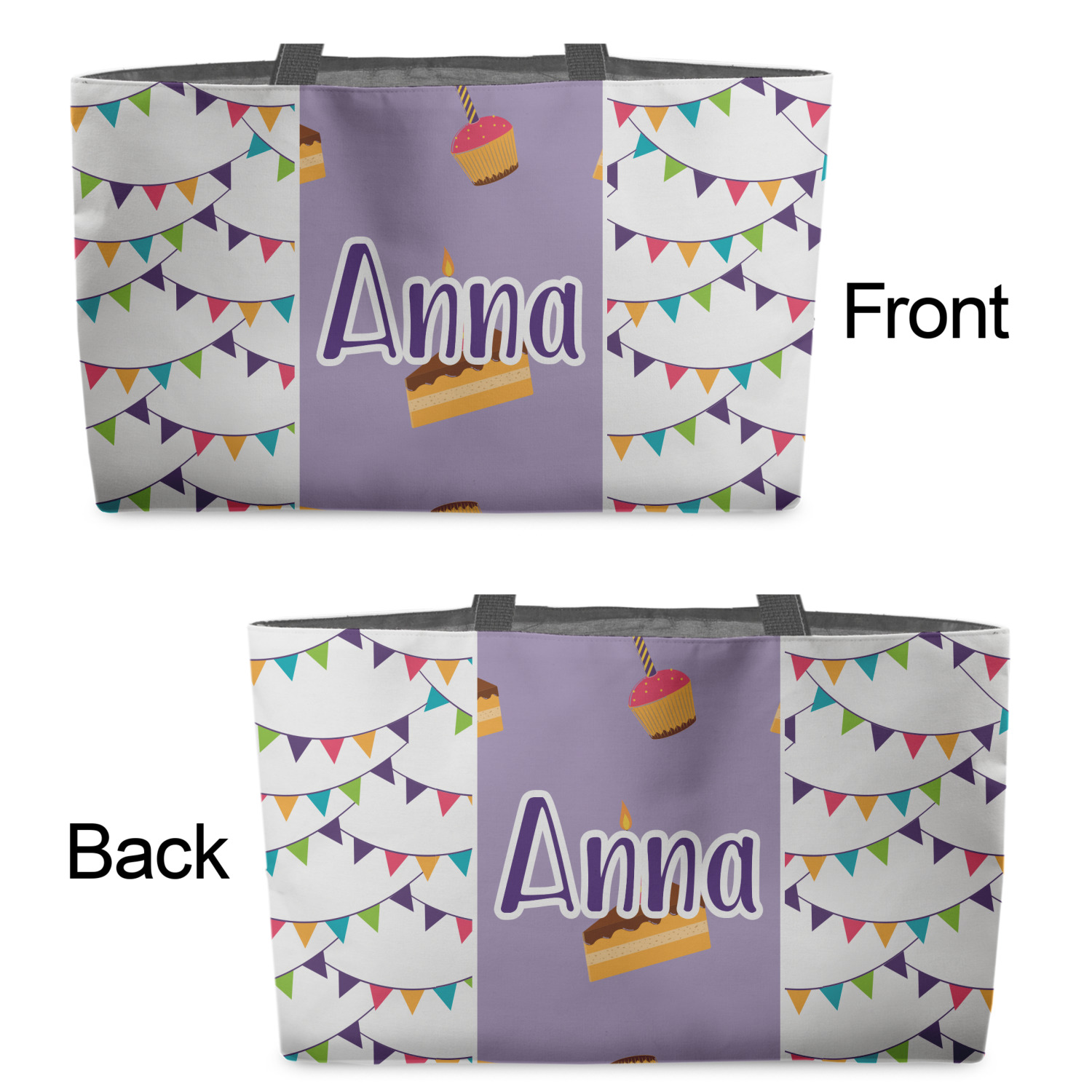 These beach totes are handmade here in the USA. Fabric is printed with your design. The tote is then sewn from the fabric pieces, lining and handles added.