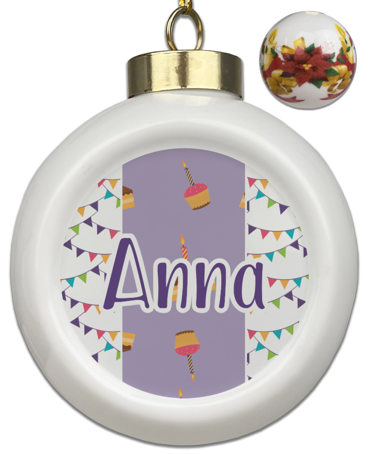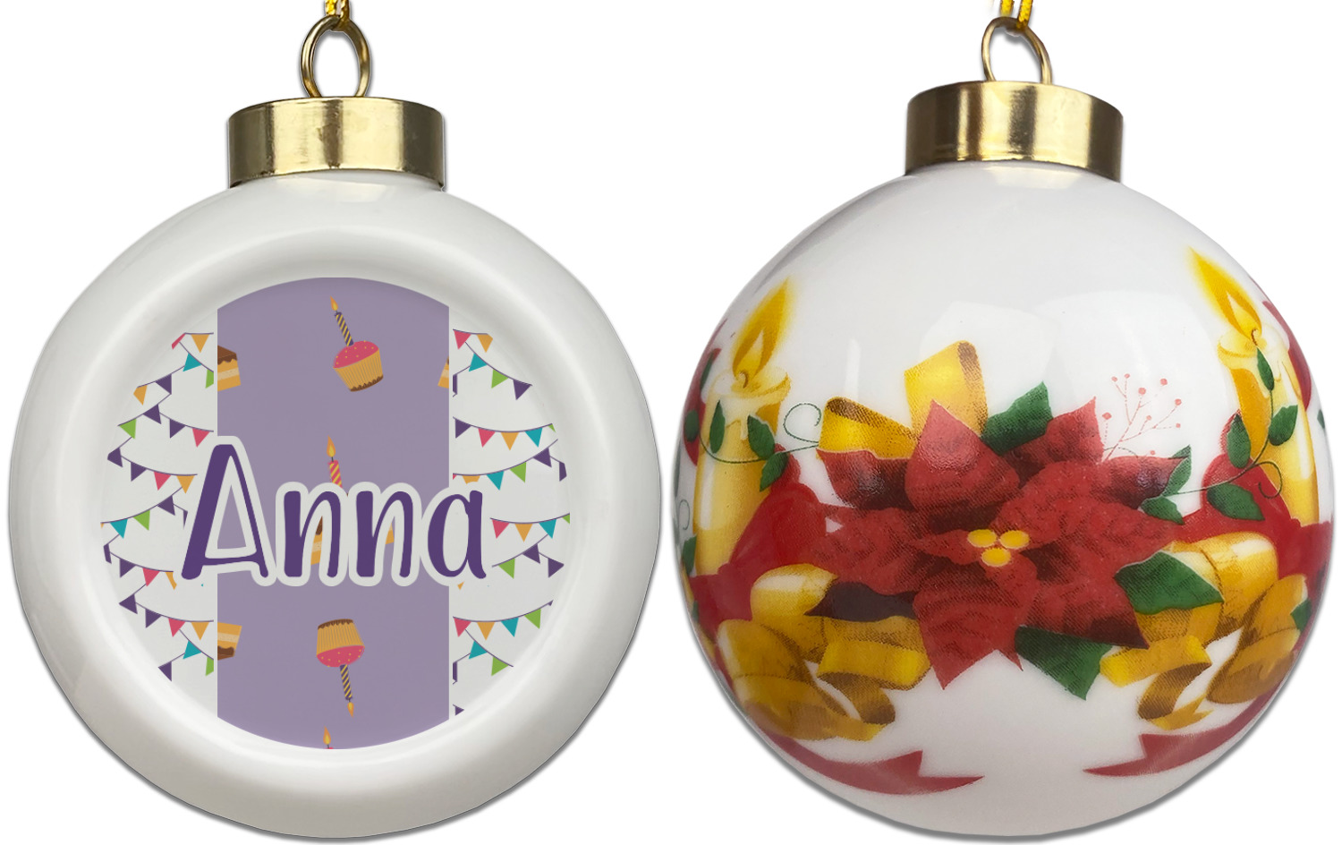 Our Christmas ornaments are a unique ceramic ball shape with a twist as it has a flat face to display your custom design! Select from one of our two design types - Christmas Tree or Poinsettia Garland - to adorn the curved back of your personal design. Each ornament measures 3H x 2.5W x 2D accompanied with a gold string accent for finishing touches to hang on your beautiful Christmas tree!