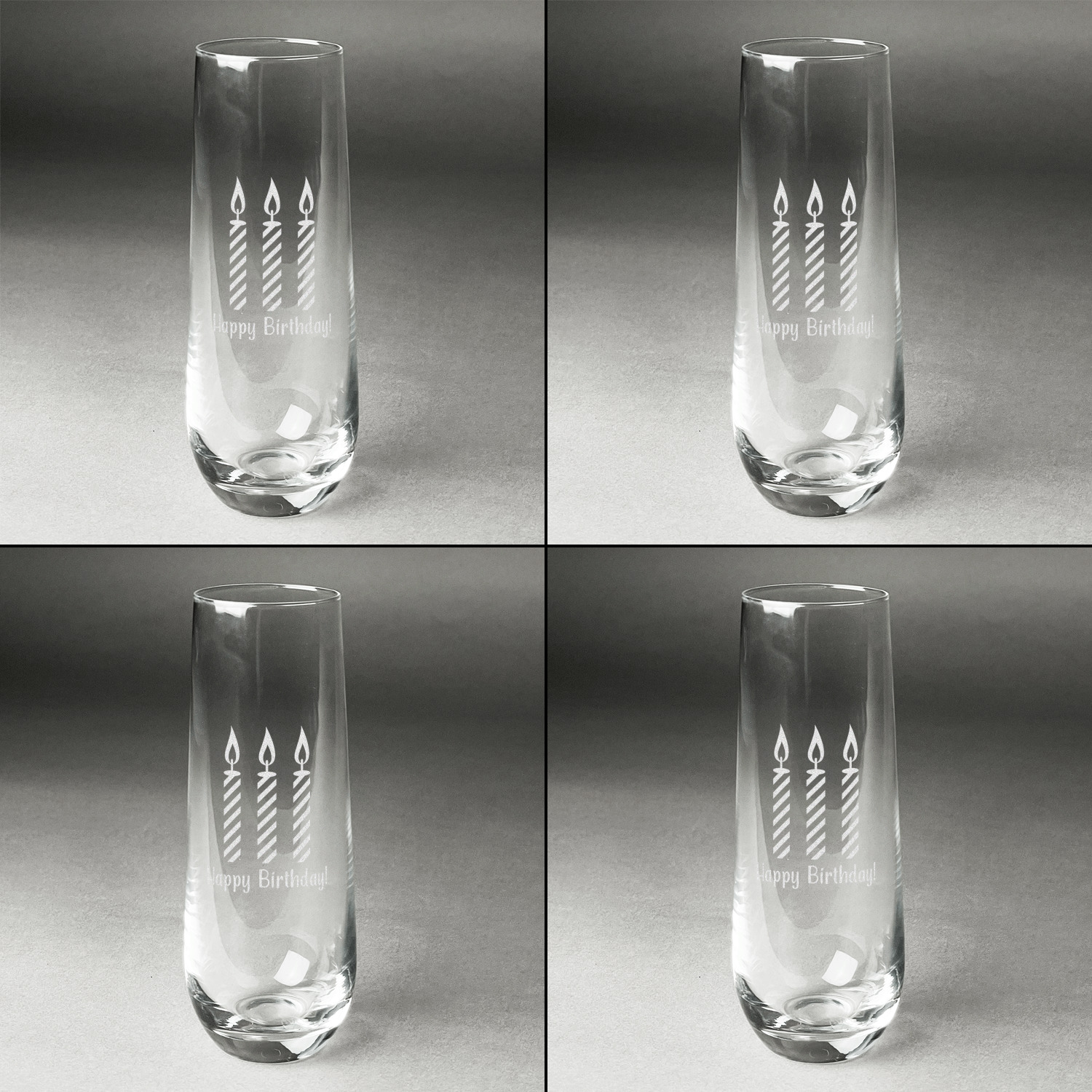 Design your custom stemless champagne flutes and we will then laser engrave your unique design on them for you. Whether they are a special gift for a bride and groom, for your New Years Eve party, or a bachelorette party you are sure to be able to add a custom personalized touch to make them perfect for the occasion.