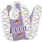 This design is filled with birthday party fun! The triangle birthday banners are a number of bright colors. Throughout the design you will find green, blue, yellow, pink, and mostly purple! The background is a fun lavender to contrast the pink cupcakes and yellow cake slices. This design in particular is divided up into three sections with two different patterns.