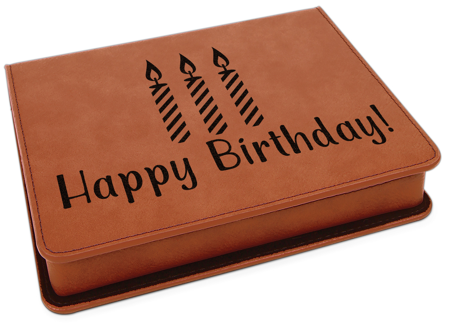 This set includes a wine stopper, pourer, drip ring, and a corkscrew! The exterior of the box is a gorgeous, cognac-brown leatherette, while the interior is covered in a black, velvety material. Four foam indentations, unique to the shape of the wine tool, are found at the bottom half of the box's interior. The tools fit snugly into each of their designated spots, and the foam material helps to protect the integrity of your tools. Each of the wine gadgets features a bamboo accent, with the location and style depending on the tool itself. We laser engrave your personalized design onto the lid of the box, which easily flips open and is secured closed by a small magnet. The wine accessories box measures at 7 by 5.5 inches in total.
