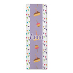 This design is filled with birthday party fun! The triangle birthday banners are a number of bright colors. Throughout the design you will find green, blue, yellow, pink, and mostly purple! The background is a fun lavender to contrast the pink cupcakes and yellow cake slices. This design in particular is divided up into three sections with two different patterns.