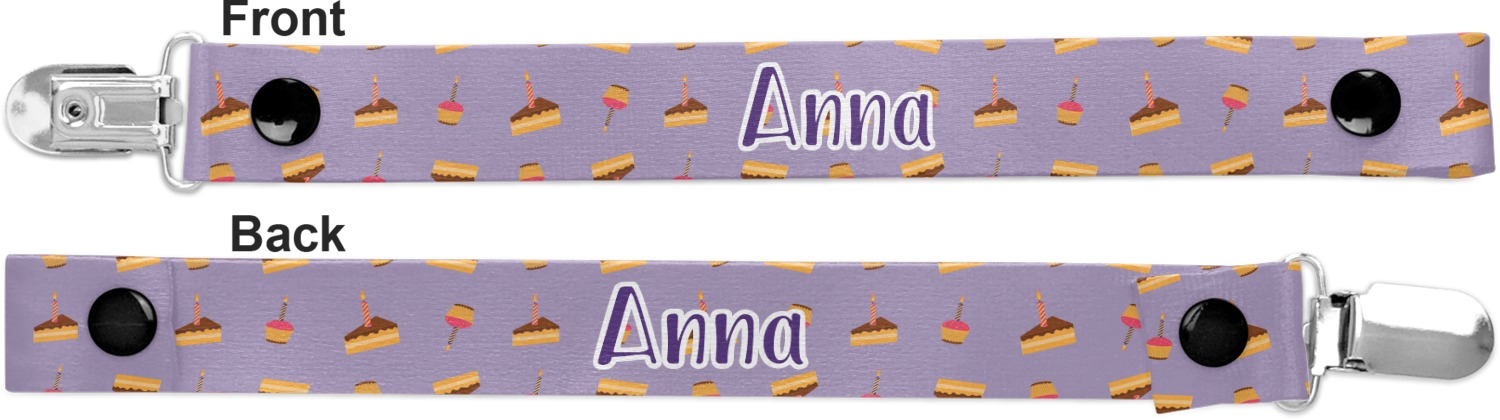 This personalized pacifier clip is the ideal size and measures at approximately 7.5 inches in length, when either end is snapped closed. On one end, you'll find a snap button. This button of your baby's pacifier holder is what can be attached to their pacifier to hold is securely in place. Simply open the snap, slip it through the pacifier opening, and snap it back into place. On the opposite end of this baby pacifier holder, you'll find a metal clip that can secure to a baby's collar or sleeve. This clip ensures that the strap stays in place, and that your baby's pacifier is always on hand.