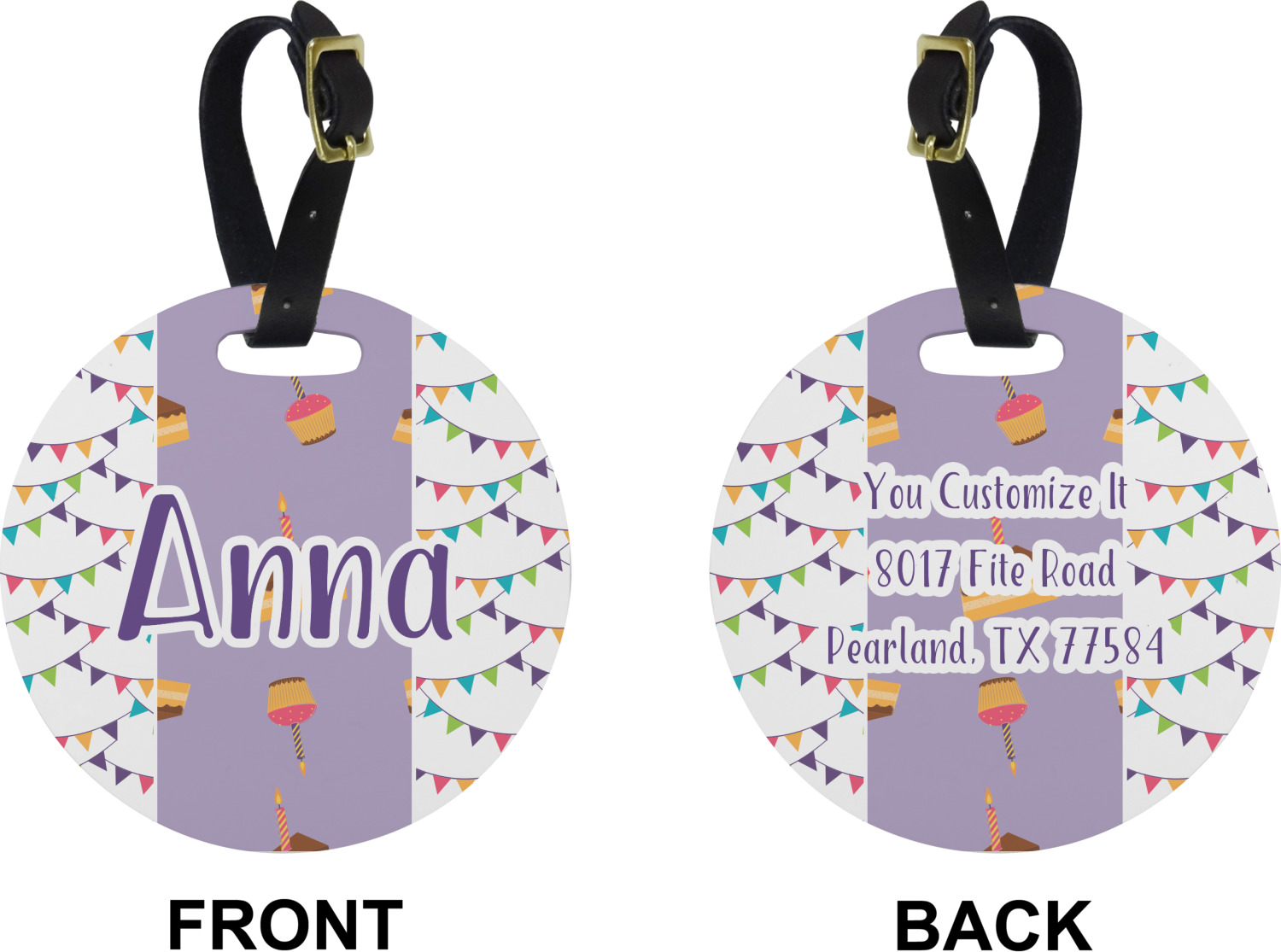 These cute luggage tags are made of a fiber-reinforced, UV-resistant plastic, making them waterproof and durable enough for both everyday use and the rugged adventures of any traveler! A leather strap with holes and a buckle is included with your purchase and can be used to attach your custom luggage tag to any suitcase, backpack, or duffel bag. You can design these travel tags as you wish; your customization will be displayed across the front, while the back will show as little or as much personal information as you want.