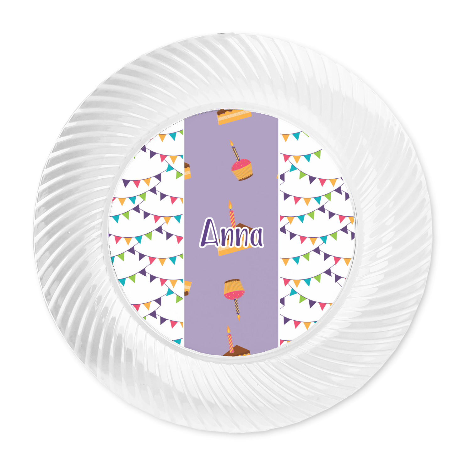 Made from a beautiful clear plastic plate as a base, your design is printed to the underside of the plate. The outside of these disposable plates has a classic swirl texture to it for a high quality look and feel.