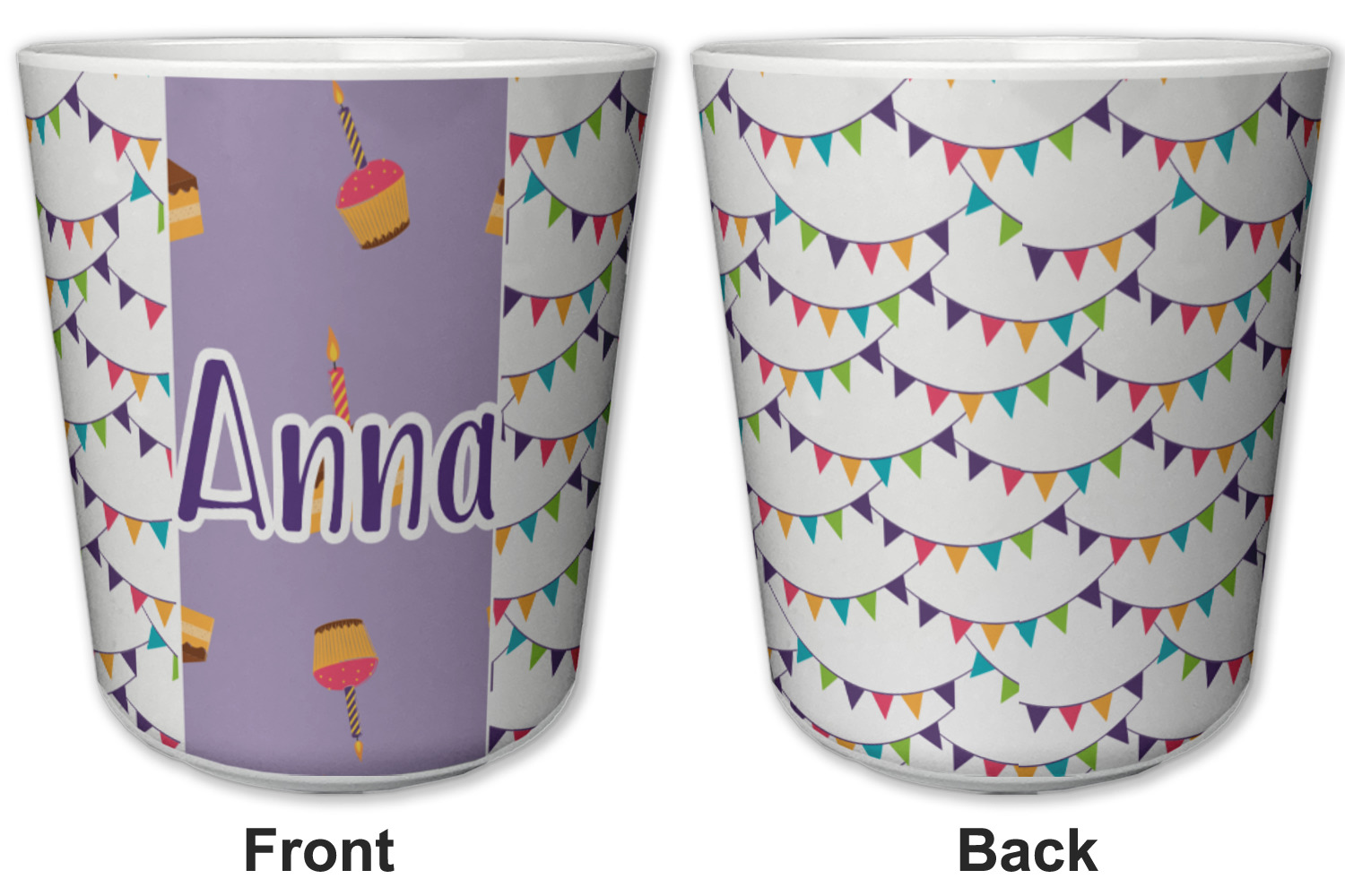 Made from a durable plastic, these tumbler cups are strong enough to withstand daily use and are perfect for young children. Each of these personalized plastic cups holds 6 ounces and measure at approximately 3" x 3" x 3.25". Place them in the bathroom as a rinsing cup, or give them to your kids during mealtimes. These 6 oz. plastic cups are BPA free, microwave and dishwasher safe, for your convenience. Your personalized design is displayed across the entire outside of this cup, while the inside is white in color to make your customization really stand out.