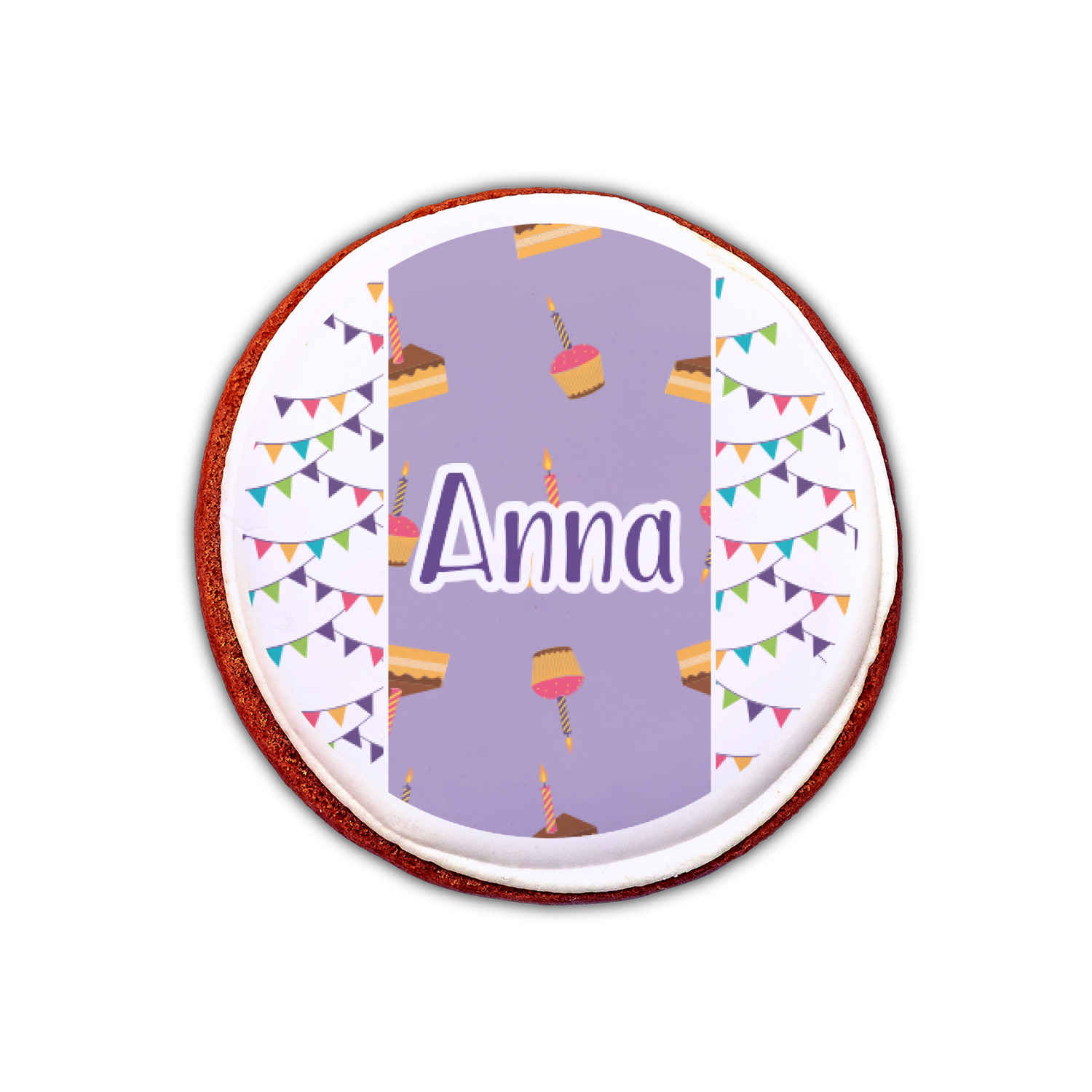 Your customized cookie toppers can be placed on top of any dessert with an icing top.The icing helps adhere the cookie topper to the dessert.