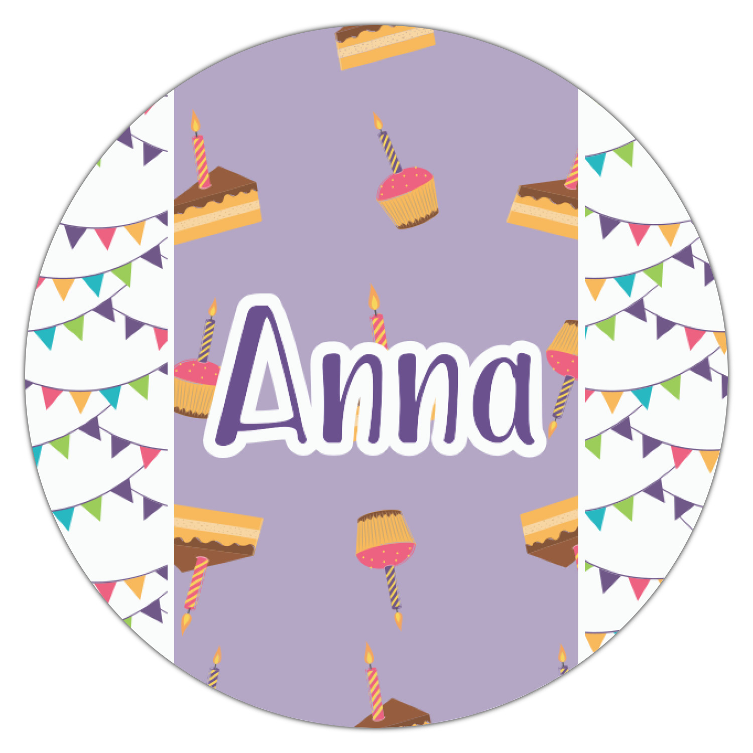 This design is filled with birthday party fun! The triangle birthday banners are a number of bright colors. Throughout the design you will find green, blue, yellow, pink, and mostly purple! The background is a fun lavender to contrast the pink cupcakes and yellow cake slices. This design in particular is divided up into three sections with two different patterns.