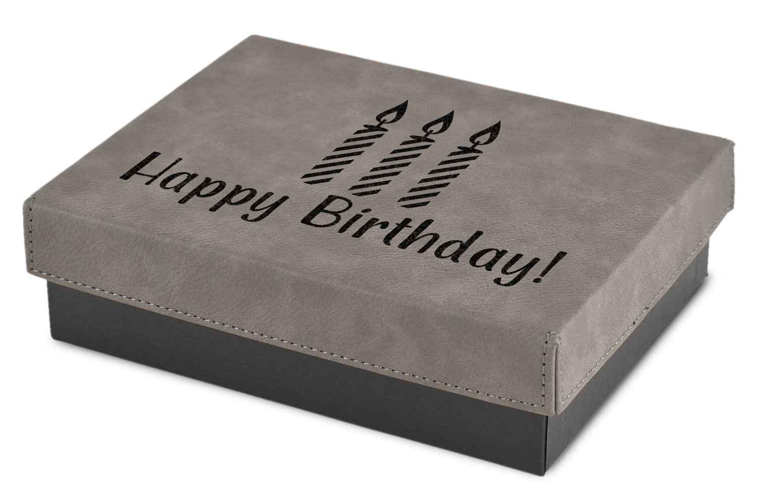 These gift boxes are available in 3 different sizes to accommodate various sized gifts. Available in gray as a neutral color for any occasion as well as to showcase your design boldly. Engraved with a laser this high quality paper board and faux leather gift box is unique and makes any gift stand out.