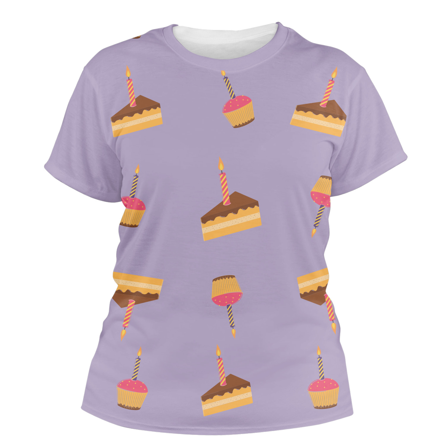 This design is filled with birthday party fun! The triangle birthday banners are a number of bright colors. Throughout the design you will find green, blue, yellow, pink, and mostly purple! The background is a fun lavender to contrast the pink cupcakes and yellow cake slices. This design in particular is divided up into three sections with two different patterns.