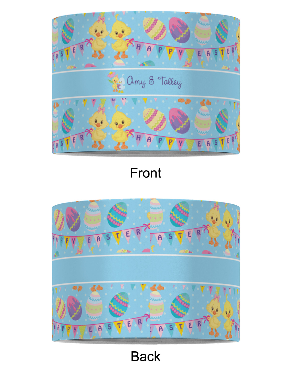 We chose to create this design for two - so we used the boy & girl graphic (we have many more Easter graphics in our system) and their for personalization. We also chose light blue with polka dots for our background. You can change both the colors and the patterns.
