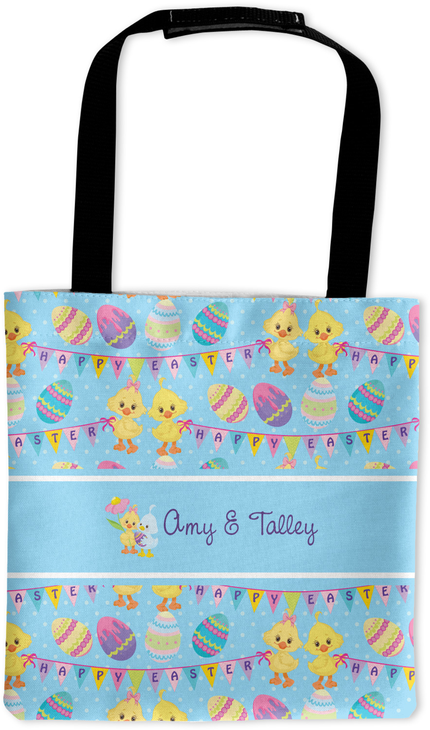 We chose to create this design for two - so we used the boy & girl graphic (we have many more Easter graphics in our system) and their for personalization. We also chose light blue with polka dots for our background. You can change both the colors and the patterns.