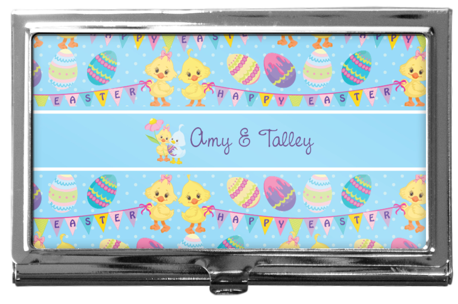 Our personalized business card holders are built from a robust, stainless steel and shaped into a sleek rectangle. At 3.75" x 2.5", and 0.25" thick, this nifty accessory holds up to 12 to 15 business cards, depending on the thickness of the cards themselves. Regardless, the skinny style makes it the perfect fit for your purse or pocket. The lid of your custom business card holder features a protruding tab to open and close your holder with a snap. To protect the mint condition of your cards, the interior of this metal business card holder is lined with a soft, felt fabric. We print your personalized design across the face of the lid.