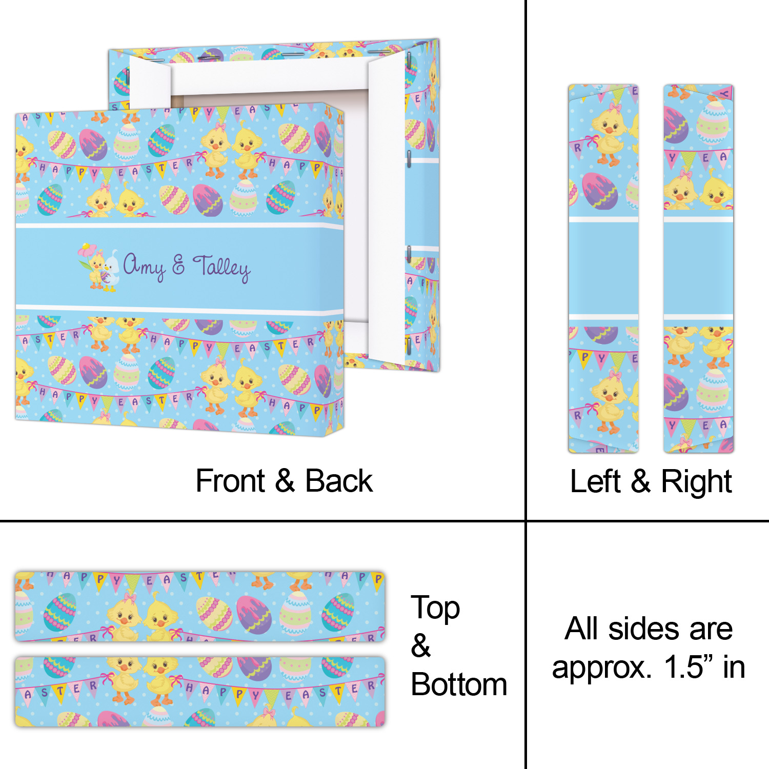 We chose to create this design for two - so we used the boy & girl graphic (we have many more Easter graphics in our system) and their for personalization. We also chose light blue with polka dots for our background. You can change both the colors and the patterns.