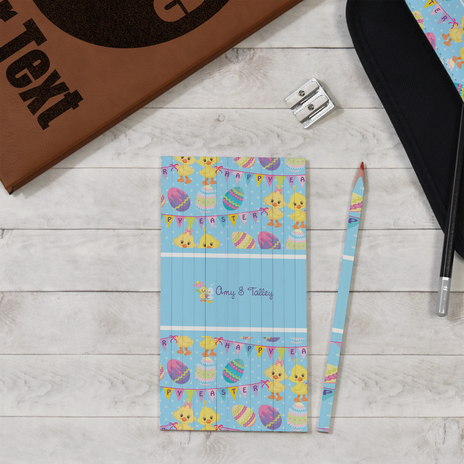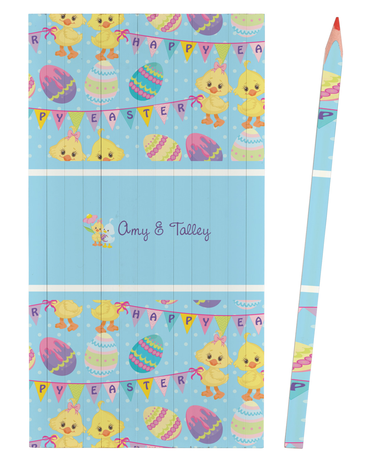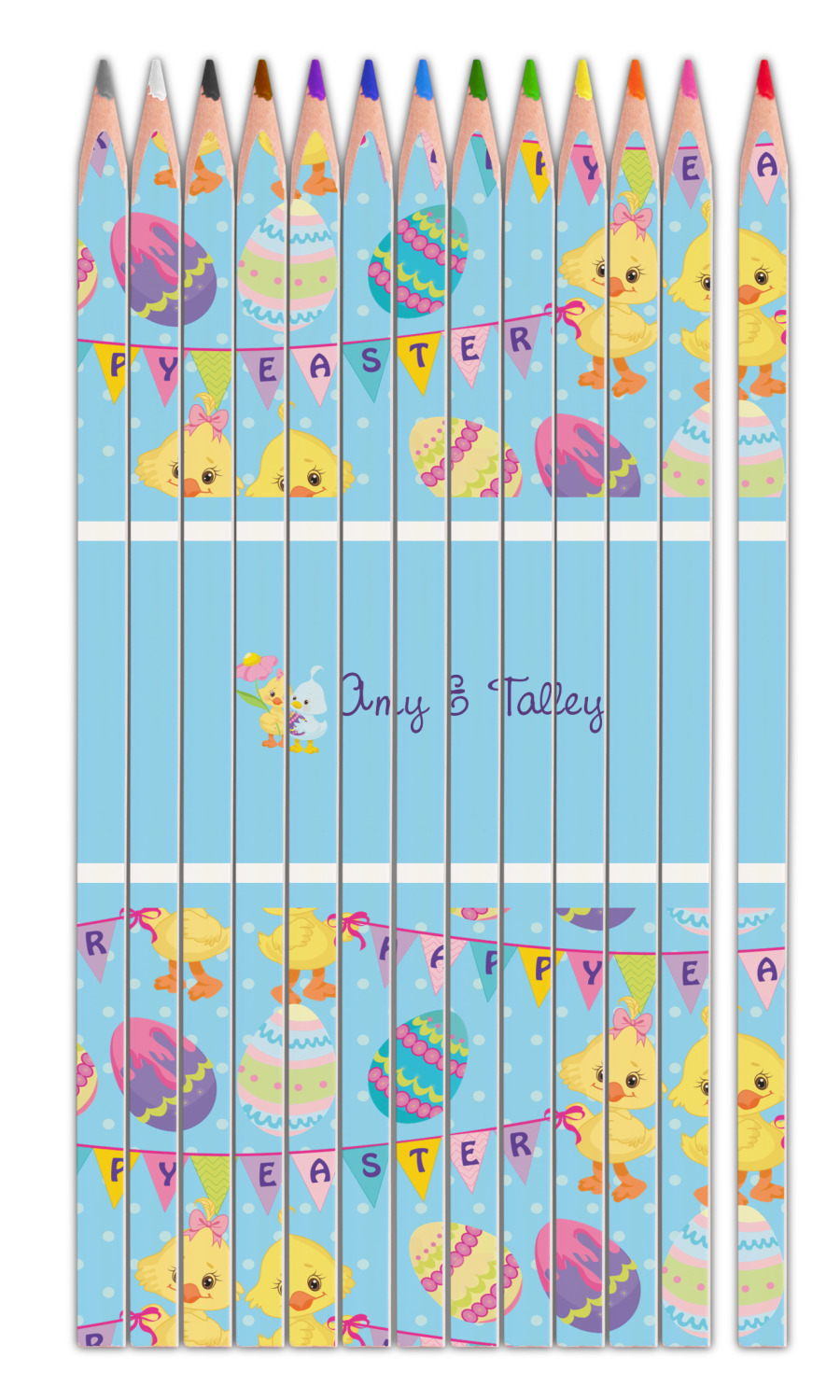 Our Happy Easter design is sure to put a big smile on your face. Easter eggs in beautiful pastel colors and chicks help create this happy Easter design. On the top we have chicks & holding up a "Happy Easter" banner and on the bottom with have chicks and Easter eggs on a light blue polka dot background.