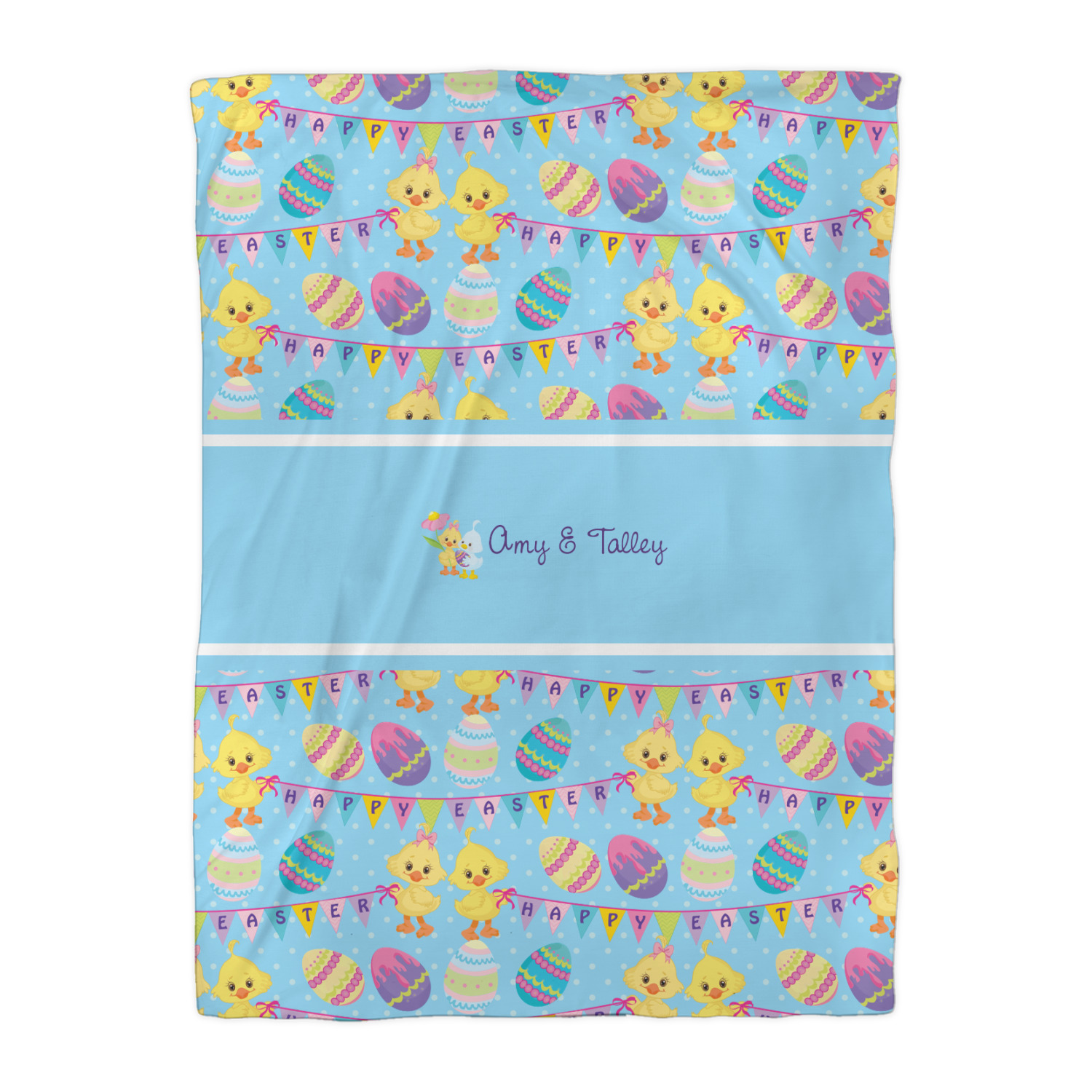 We chose to create this design for two - so we used the boy & girl graphic (we have many more Easter graphics in our system) and their for personalization. We also chose light blue with polka dots for our background. You can change both the colors and the patterns.