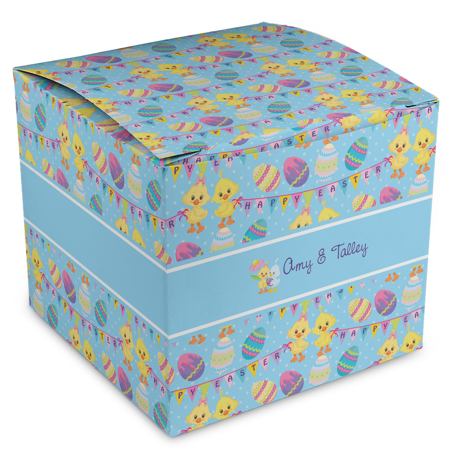 We chose to create this design for two - so we used the boy & girl graphic (we have many more Easter graphics in our system) and their for personalization. We also chose light blue with polka dots for our background. You can change both the colors and the patterns.