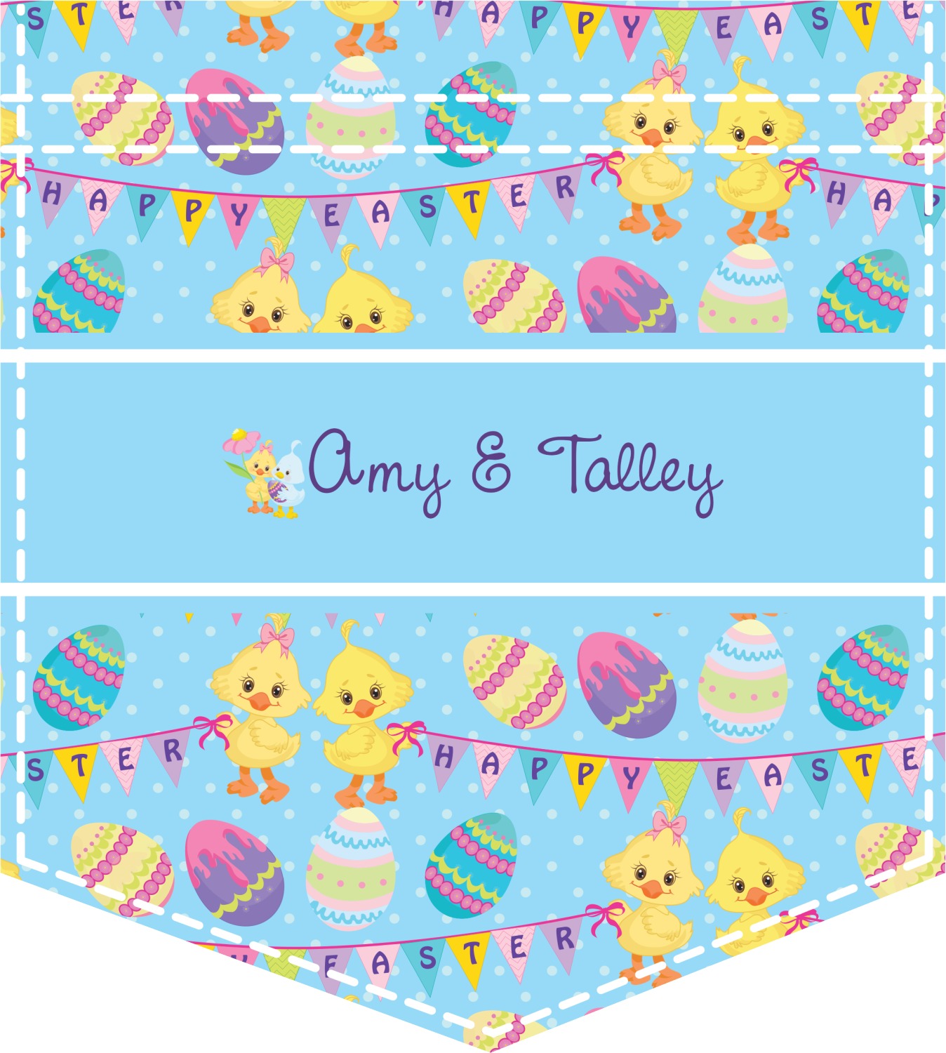 We chose to create this design for two - so we used the boy & girl graphic (we have many more Easter graphics in our system) and their for personalization. We also chose light blue with polka dots for our background. You can change both the colors and the patterns.