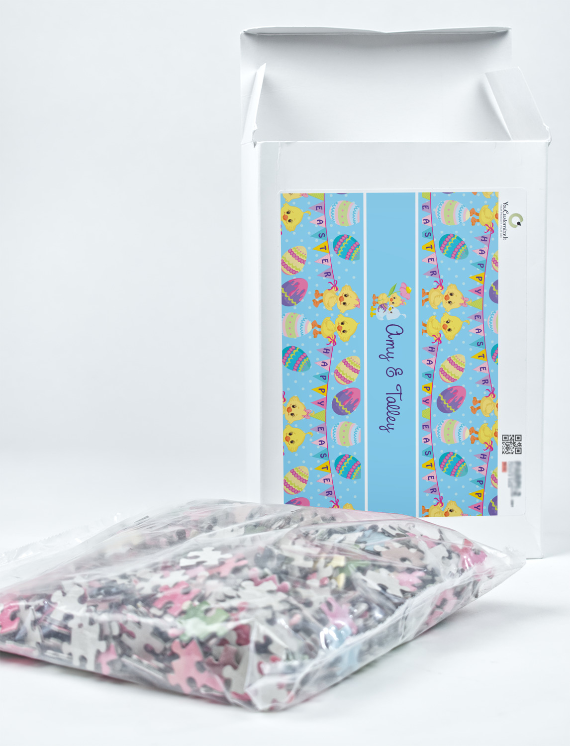 You can also upload your logo or art that you or your kids drew. To create more challenging jigsaw puzzles, you can create a pattern from with your logo or artwork. You can also add other elements such as text or personalization.