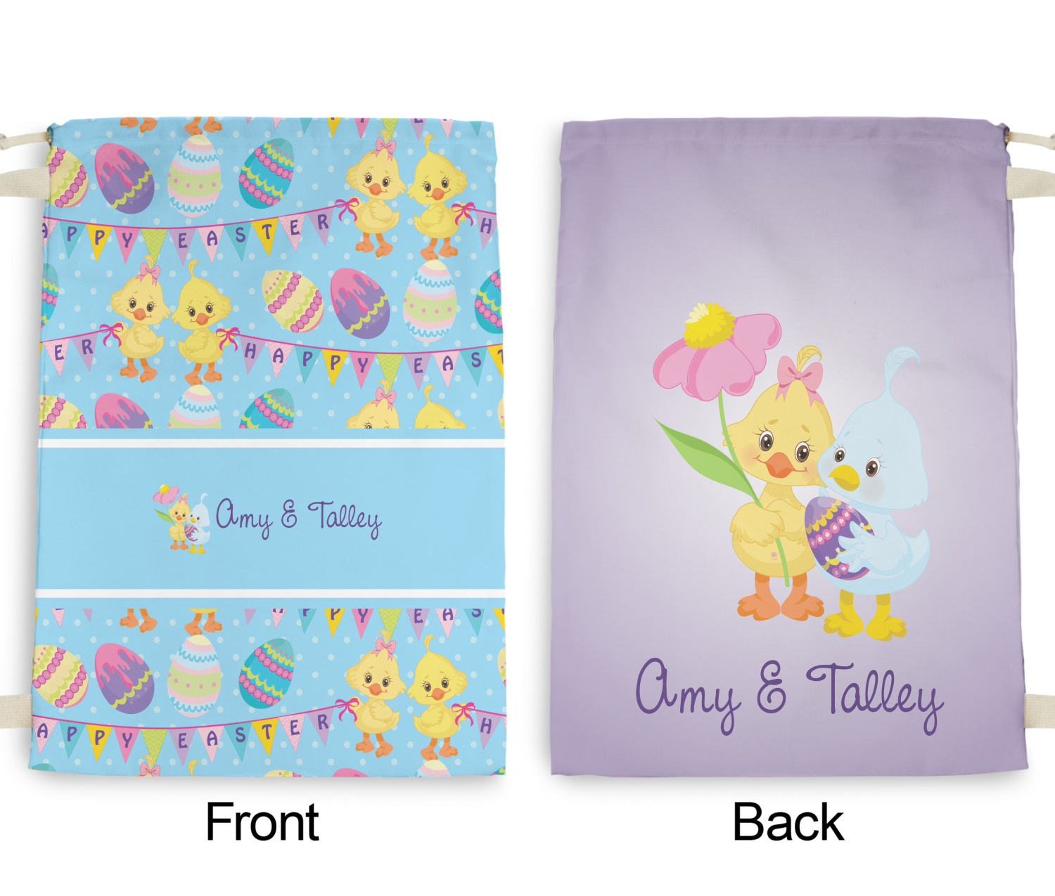 We chose to create this design for two - so we used the boy & girl graphic (we have many more Easter graphics in our system) and their for personalization. We also chose light blue with polka dots for our background. You can change both the colors and the patterns.