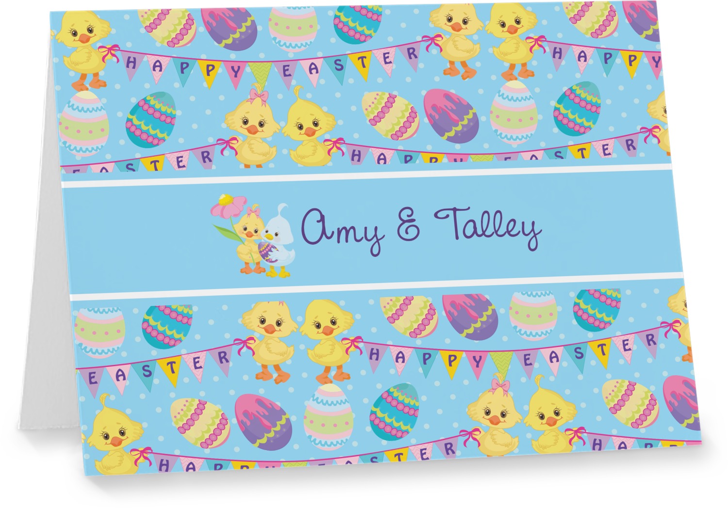 Our custom folded note cards are printed on premium 100lb. card stock and comes with white envelopes. The note card measure 5.5 by 4.25 inches and are blank on the inside for your handwritten message.