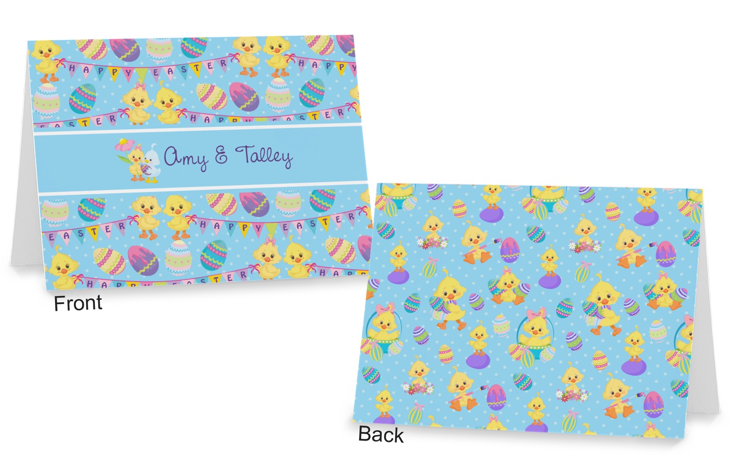 We chose to create this design for two - so we used the boy & girl graphic (we have many more Easter graphics in our system) and their for personalization. We also chose light blue with polka dots for our background. You can change both the colors and the patterns.