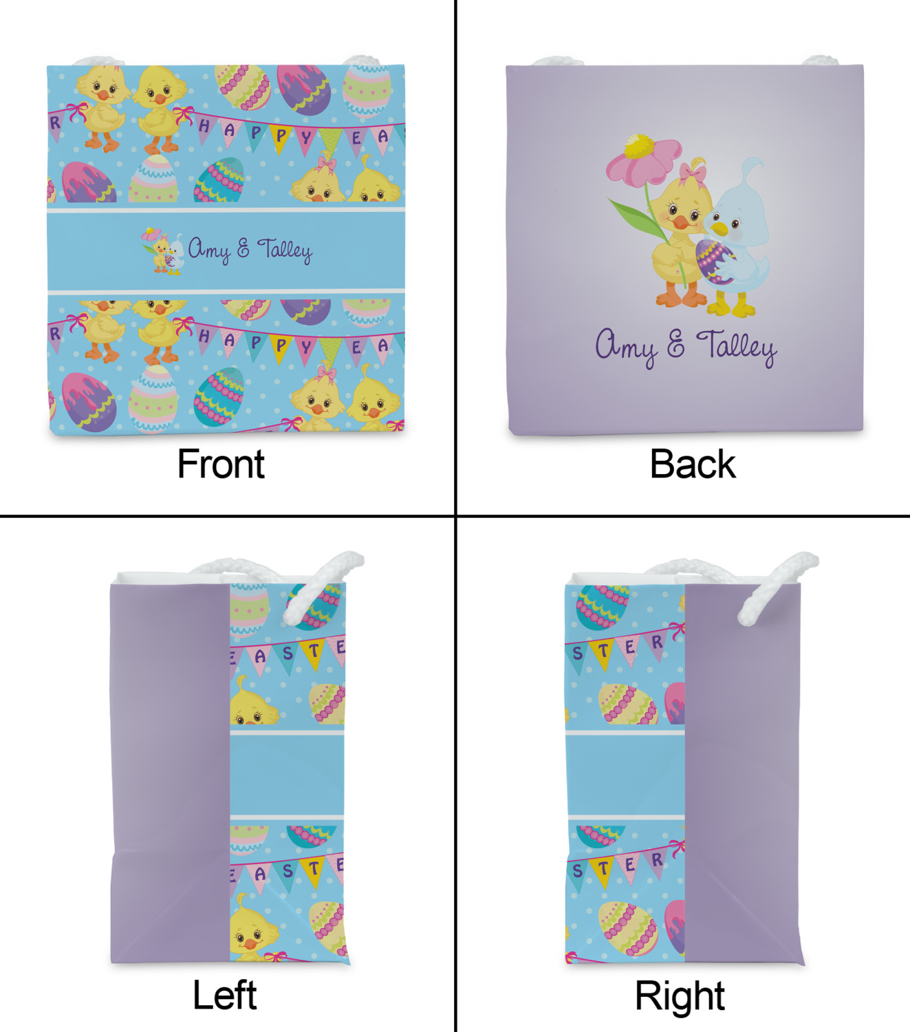 We chose to create this design for two - so we used the boy & girl graphic (we have many more Easter graphics in our system) and their for personalization. We also chose light blue with polka dots for our background. You can change both the colors and the patterns.