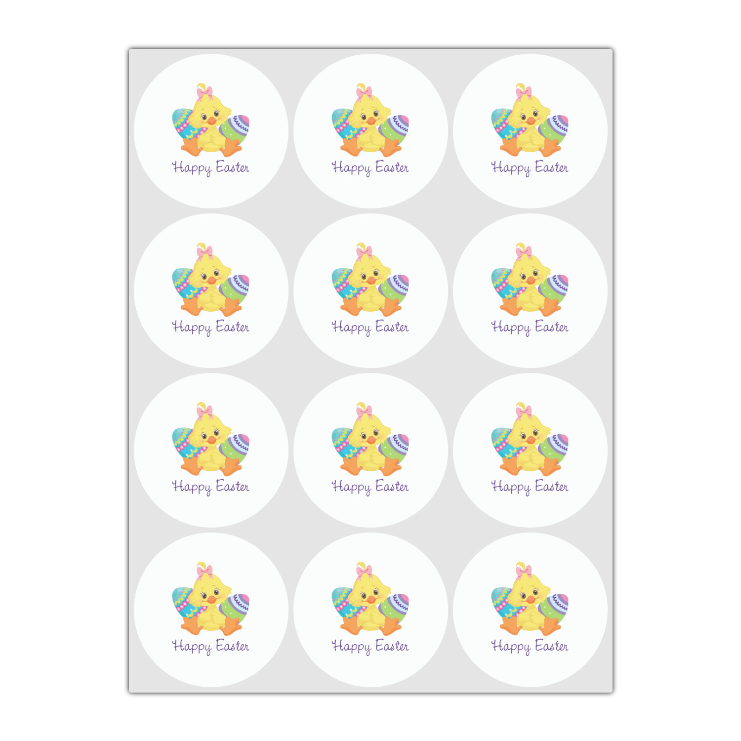 Our Happy Easter design is sure to put a big smile on your face. Easter eggs in beautiful pastel colors and chicks help create this happy Easter design. On the top we have chicks & holding up a "Happy Easter" banner and on the bottom with have chicks and Easter eggs on a light blue polka dot background.