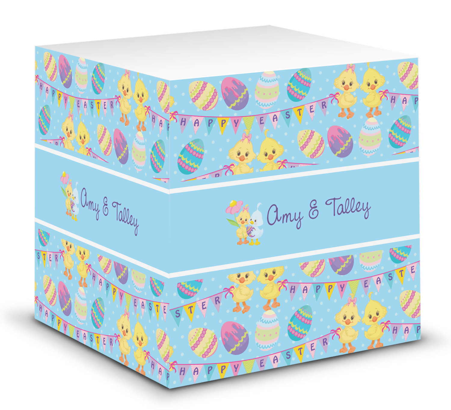 This note cube features 700 sheets of matte, white paper. Each sheet measures at 3.5 by 3.5 inches and has an adhesive strip at its top. Your personalized design is displayed on all four edges of the sticky pad.