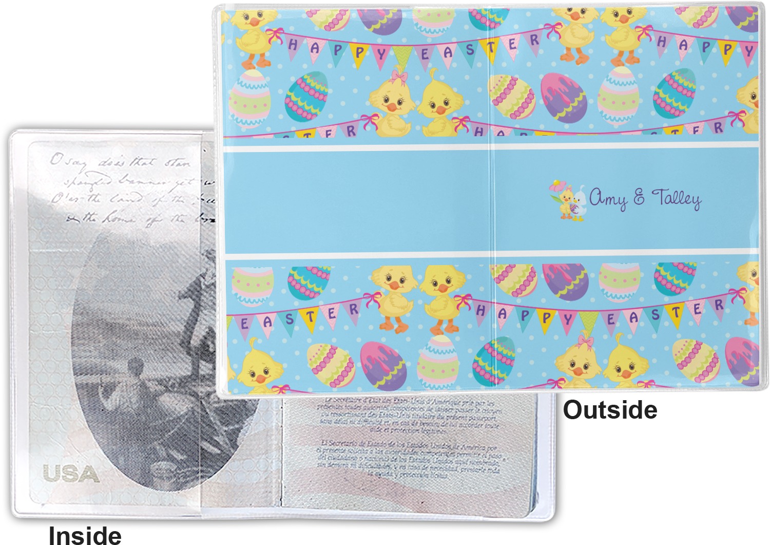 This cover is made of a sturdy clear vinyl with a personalized vinyl insert inside. There is a large and a small pocket on either side to hold the covers of your passport easily and firmly. The passport holder is approximately 7.5" x 5.25", the perfect size to snugly fit your passport. This slim cover is the perfect way to protect your passport without being one more bulky item you have to carry.