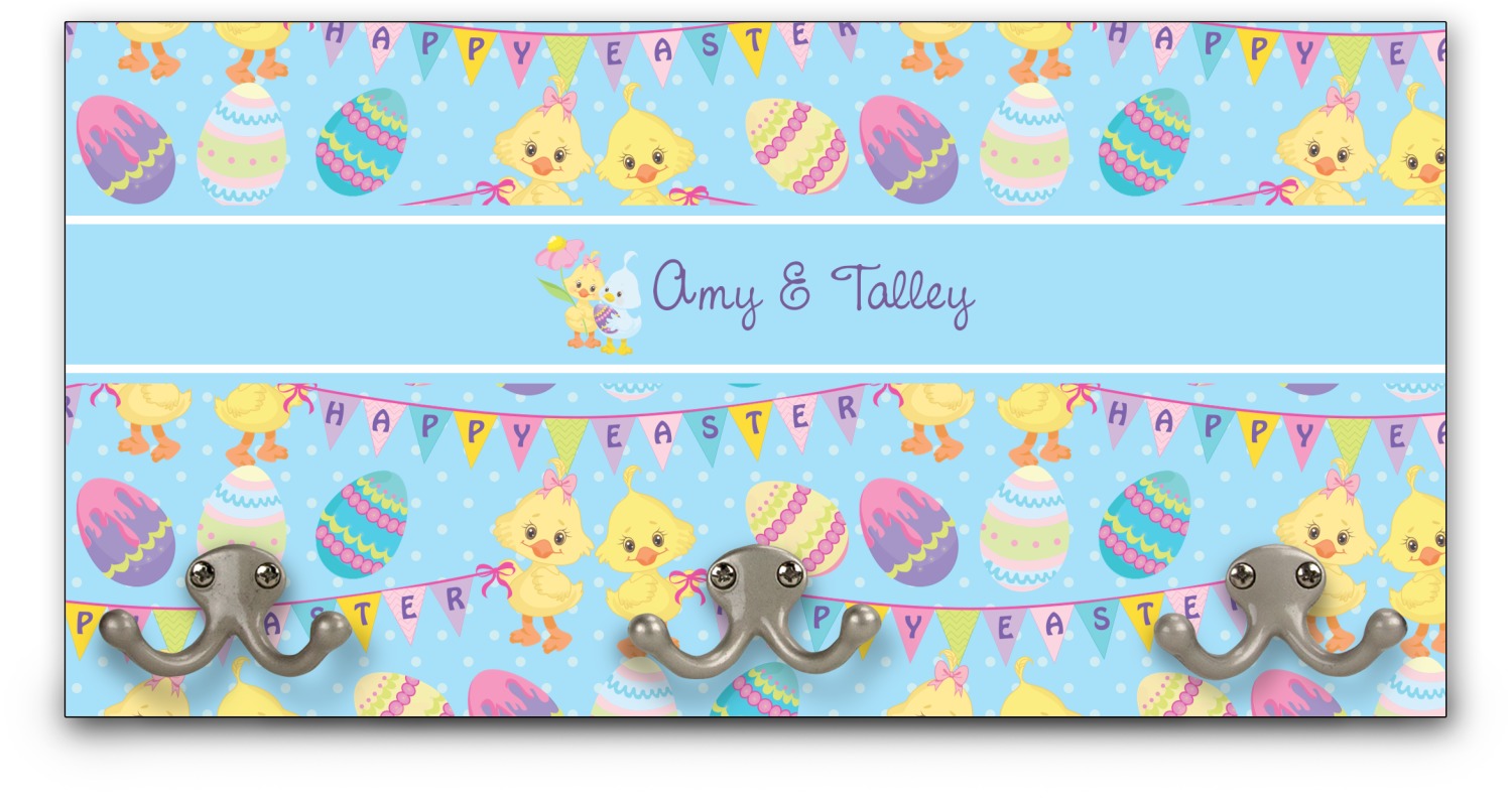 This coat rack is the perfect way to add some personality to your wall or entryway. The board is made of a strong maple that is approximately 16" x 8". The three 2-prong hooks are a sturdy metal that have three screws attaching them to the board. Your design is printed right onto the front of the board while the back and sides are a simple black.
