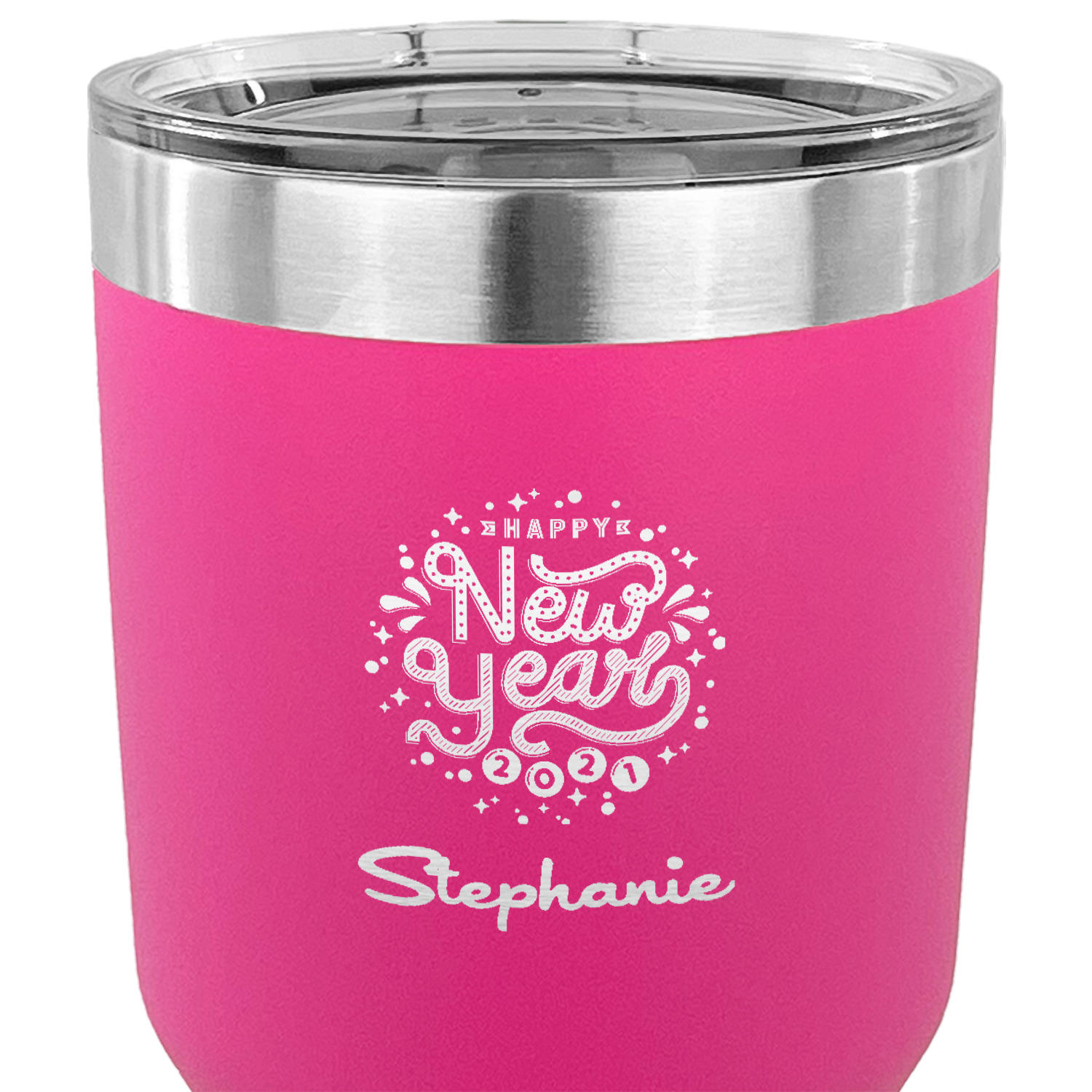 With the 5 colors - Black, Navy, Red, Pink and Coral, you are sure to find a cup to fit your personality. You can chose to engrave on the front or the front and back of the cup. Use our design studio to design your own cup and we laser engrave it for you.