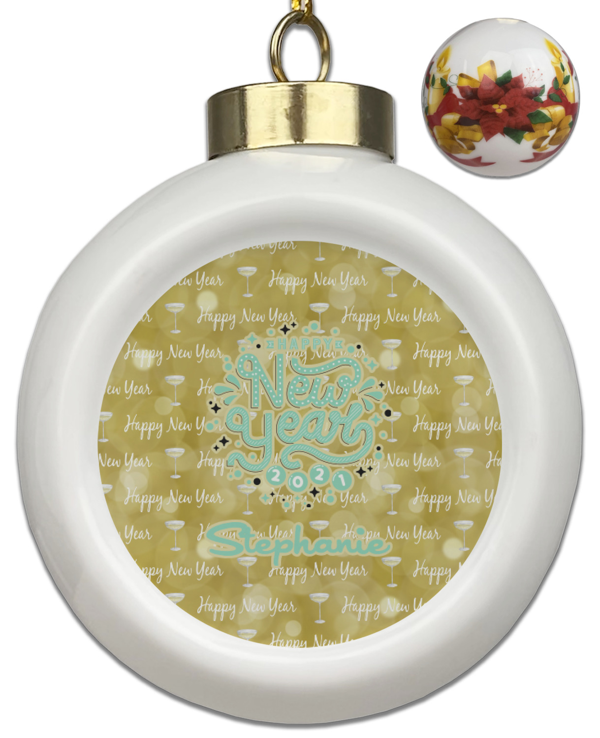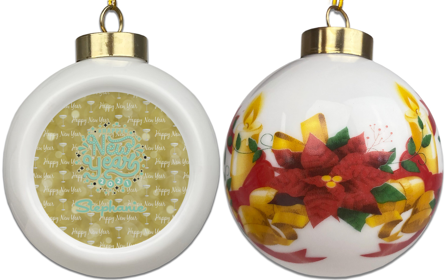 Our Christmas ornaments are a unique ceramic ball shape with a twist as it has a flat face to display your custom design! Select from one of our two design types - Christmas Tree or Poinsettia Garland - to adorn the curved back of your personal design. Each ornament measures 3H x 2.5W x 2D accompanied with a gold string accent for finishing touches to hang on your beautiful Christmas tree!