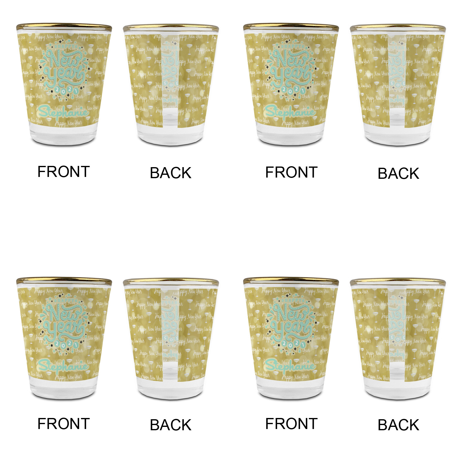 Made with frosted glass, these shot glasses are printed in full color with the design of your choice. They are a standard 1.5oz shot glass and are 2.4" tall. The print is wrapped around the shot glass in a full wrap and boldly displays your customization.