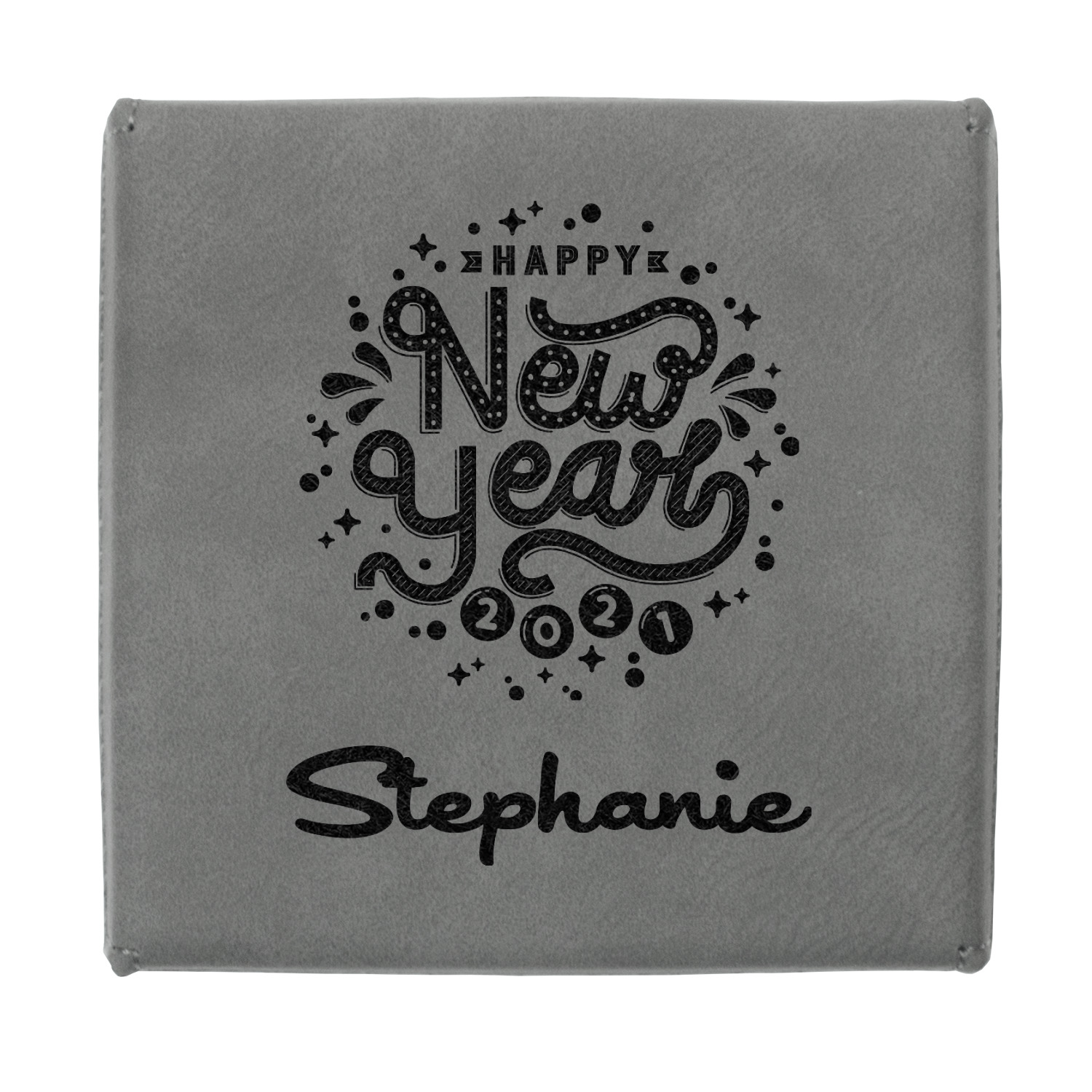 This jewelry gift box measures 3.5 inches long by 3.5 inches wide, and 1 inch deep. The box fits different sized jewelry items such as bracelets, necklaces, watches, earrings, rings and more. Engraved with a laser this high quality paper board and faux leather jewelry gift box is unique and makes any gift stand out.