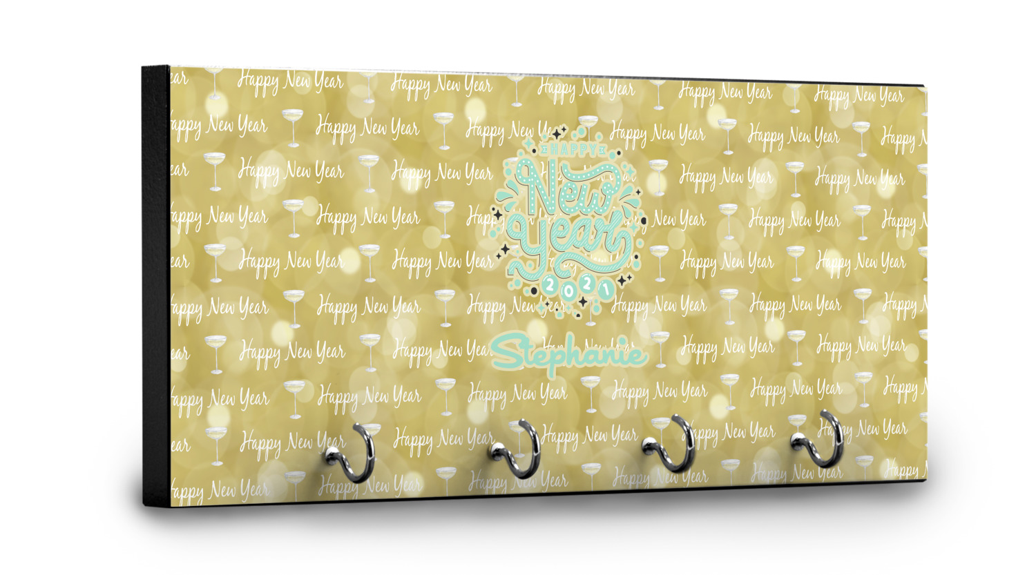 This 11" x 5" key hanger is made of sturdy wood and has four metal hooks lining the bottom. This is the perfect size for a family with several drivers. Not only can you hang keys on it though, but pet leashes and other small items. The board is black on the sides and back and is printed with the design of your choice on the front.
