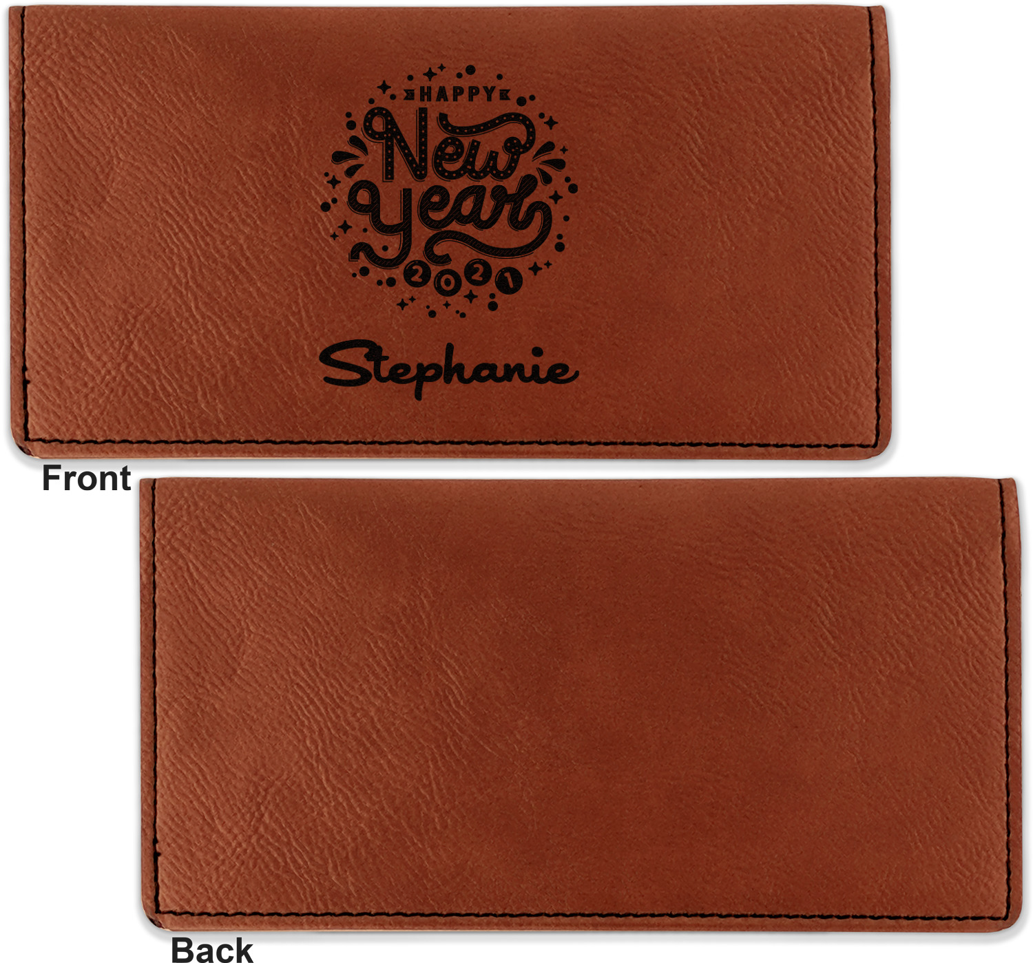 Go into our design center to start personalizing. Your checkbook cover will be laser engraved, making the graphic or text a black color. Choose a fun saying, monogram, or font to go on your checkbook cover. You have the opportunity to do it double or single sided.