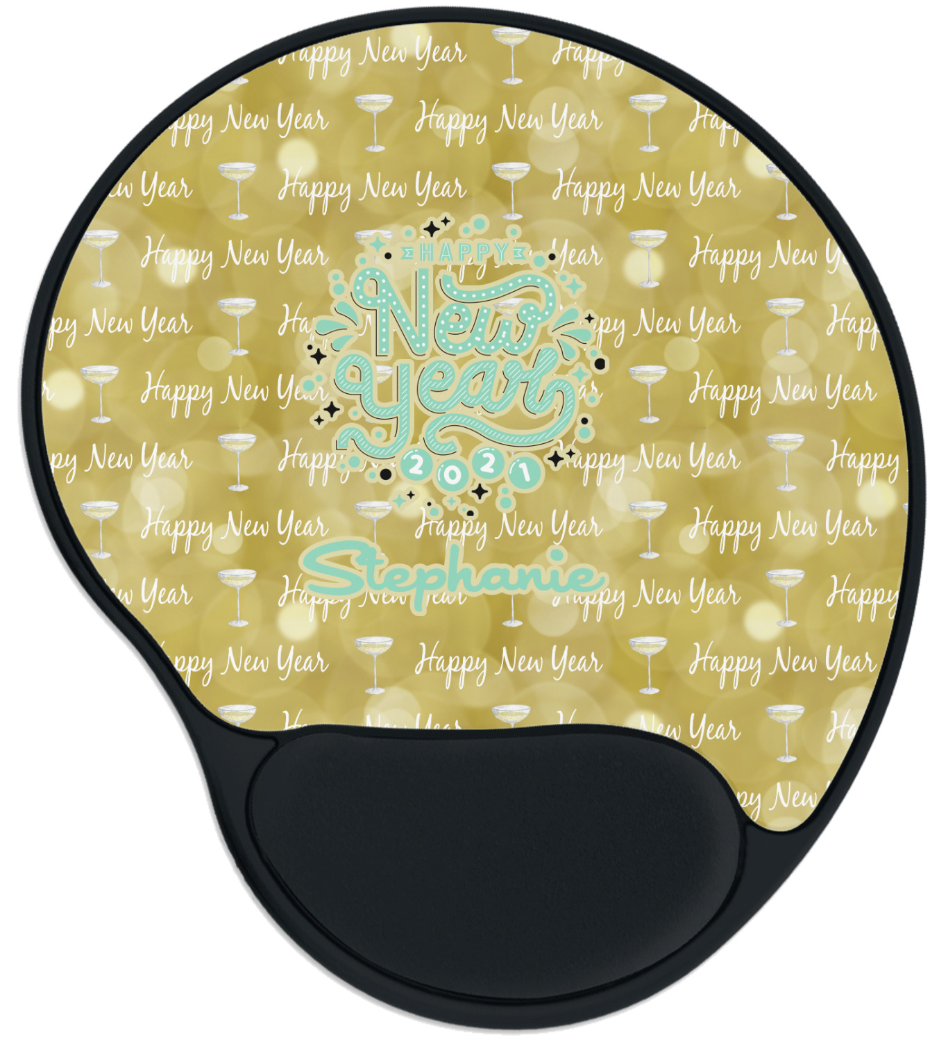 The top of these personalized mouse pads are made from a polyester, while the underside is plastic. The back of these mouse mats include rubber feet to prevent any slippage while in use. A padded wrist support, made from plush memory foam, occupies the bottom section of these computer mouse pads. Your customized design is printed onto the face of this mat, with the remaining sides and support piece colored in black. The mat itself is rounded and measures at 10.25" x 9.13".