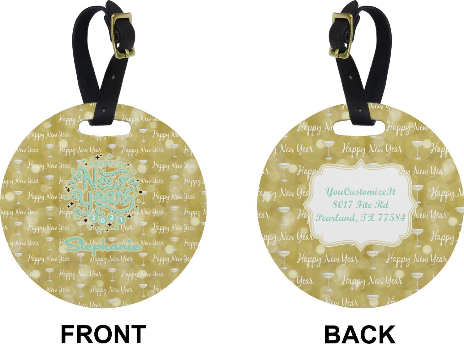 These personalized bag tags are sold in a variety of shapes, so that you may find the product that meets your vision exactly. We sell a round luggage tag, which measures at approximately 4" x 4". Our square luggage tag is about 3.5" x 3.5", while our rectangular version is 2.75" x 4 ".