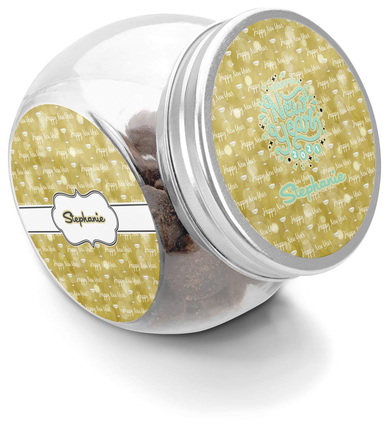 This treat jar is an excellent way to store treats for your favorite canine or feline. Moreover, their delicate, classy appearance makes them a tasteful addition to your countertop's décor. Crafted from clear glass, its unique construction and silver metal, screw-on lid allows for quick and easy access. Three, permanent, vinyl stickers are applied to both sides of the jar and lid, presenting your personalized design. The base of this glass, dog treat jar is 3.4" x 4.75", and the jar stands at 5" tall. Though on the smaller side, this jar is best suited for smaller treats or training treats.