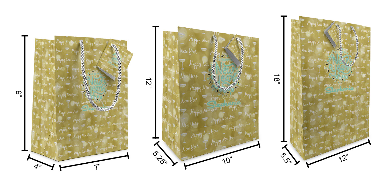 These custom gift bags come in your choice of 3 sizes. Their dimensions are below: