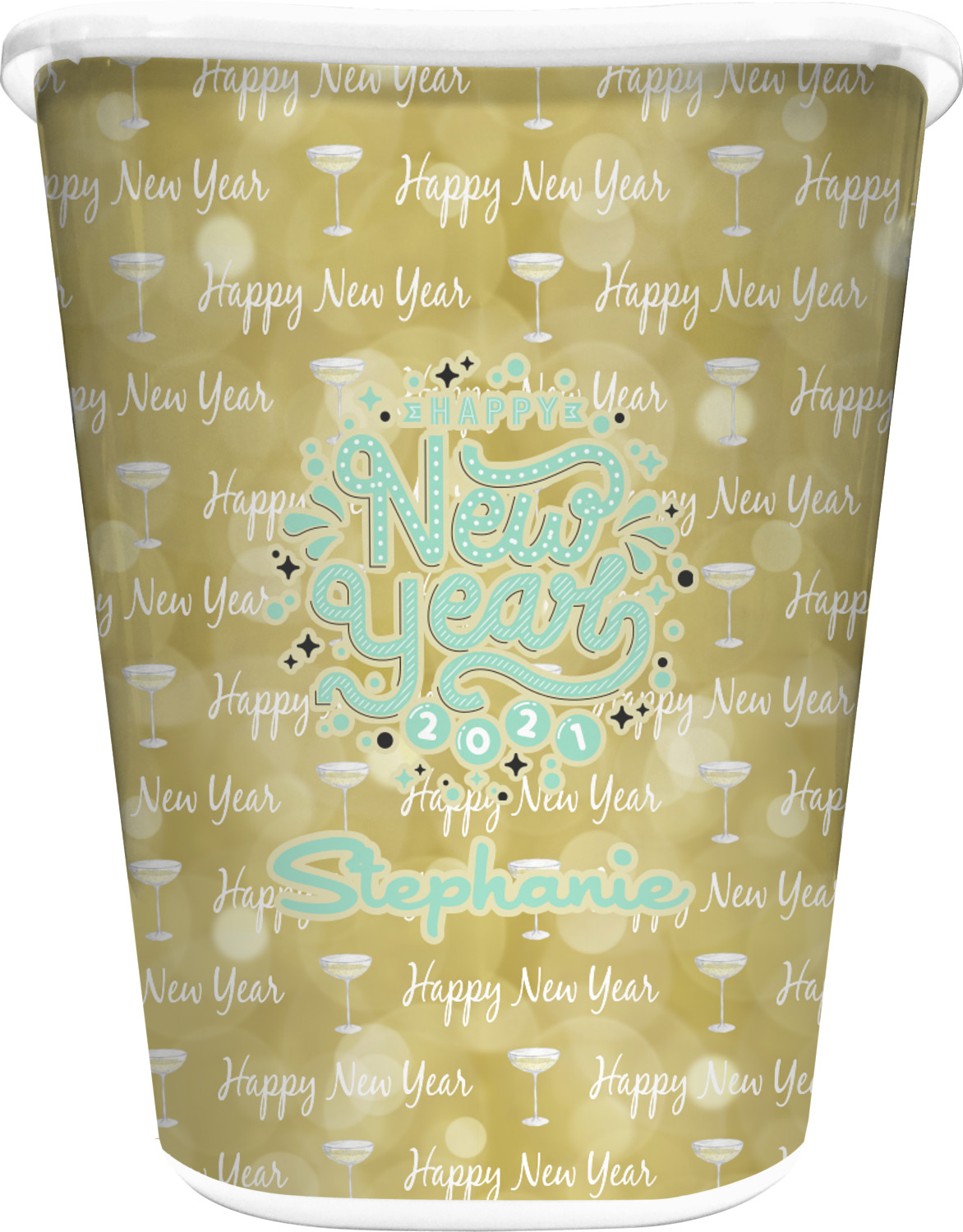 You can choose to purchase these decorative wastebaskets in either a white or a black color that will show on the base and the upper rim. Your customization is printed on a high-gloss, fine-quality vinyl adhesive, and you can choose to either have this adhesive applied to one side only or to both sides. As such, this plastic wastebasket can be single-sided or double-sided, depending on your creative vision. Your customization is printed using durable inks, making the design waterproof and resistant to fading over time.