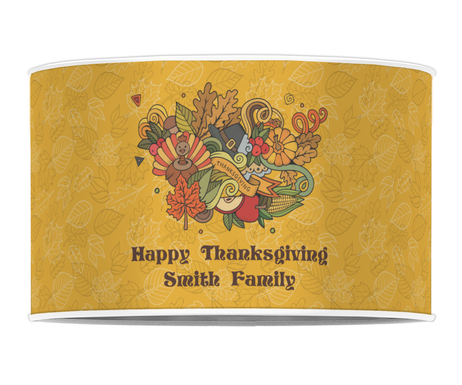 Happy Thanksgiving is a retro classic design with all the fall and thanksgiving elements. The background is two tones of leaves on a gold background and it features a hand drawn montage / collage of thanksgiving elements. We chose a retro font and personalized it with "Happy Thanksgiving" and "Smith Family" in a fall / thanksgiving dark brown from our fall/thanksgiving color palette.