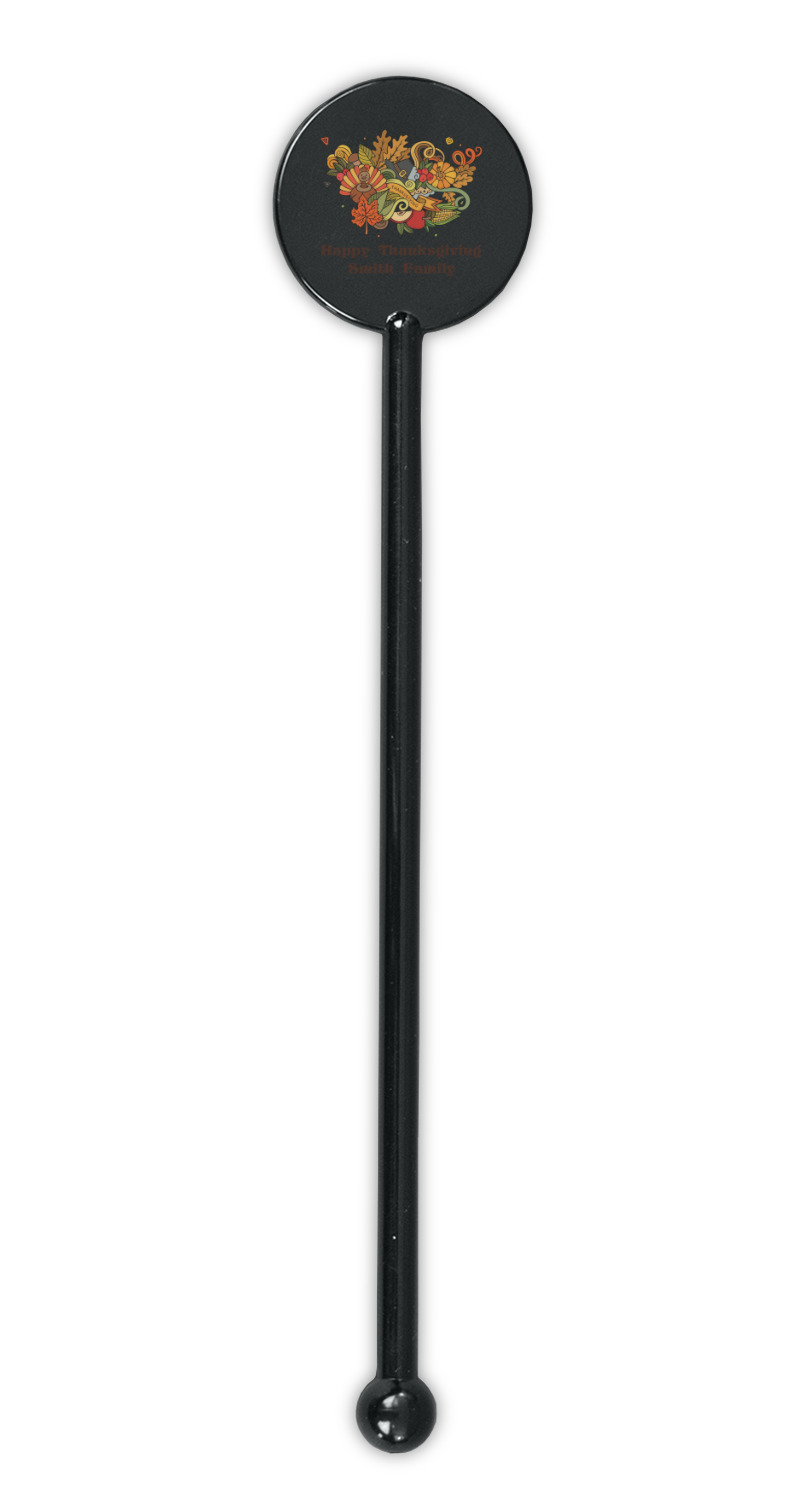 Pumpkins Designs for 5.5" Round Plastic Stir Sticks - Black - Single-Sided
