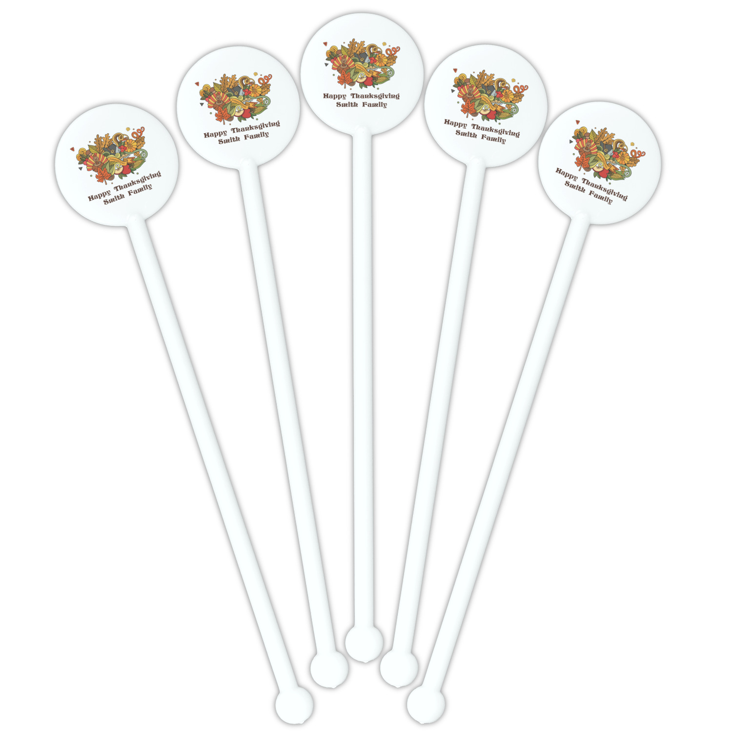 Pumpkins Designs for 5.5" Round Plastic Stir Sticks - White - Double-Sided