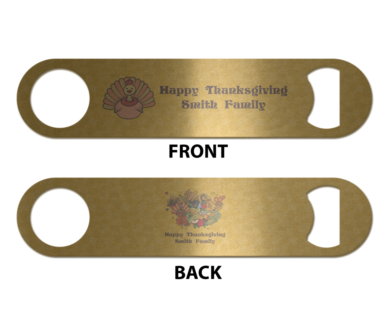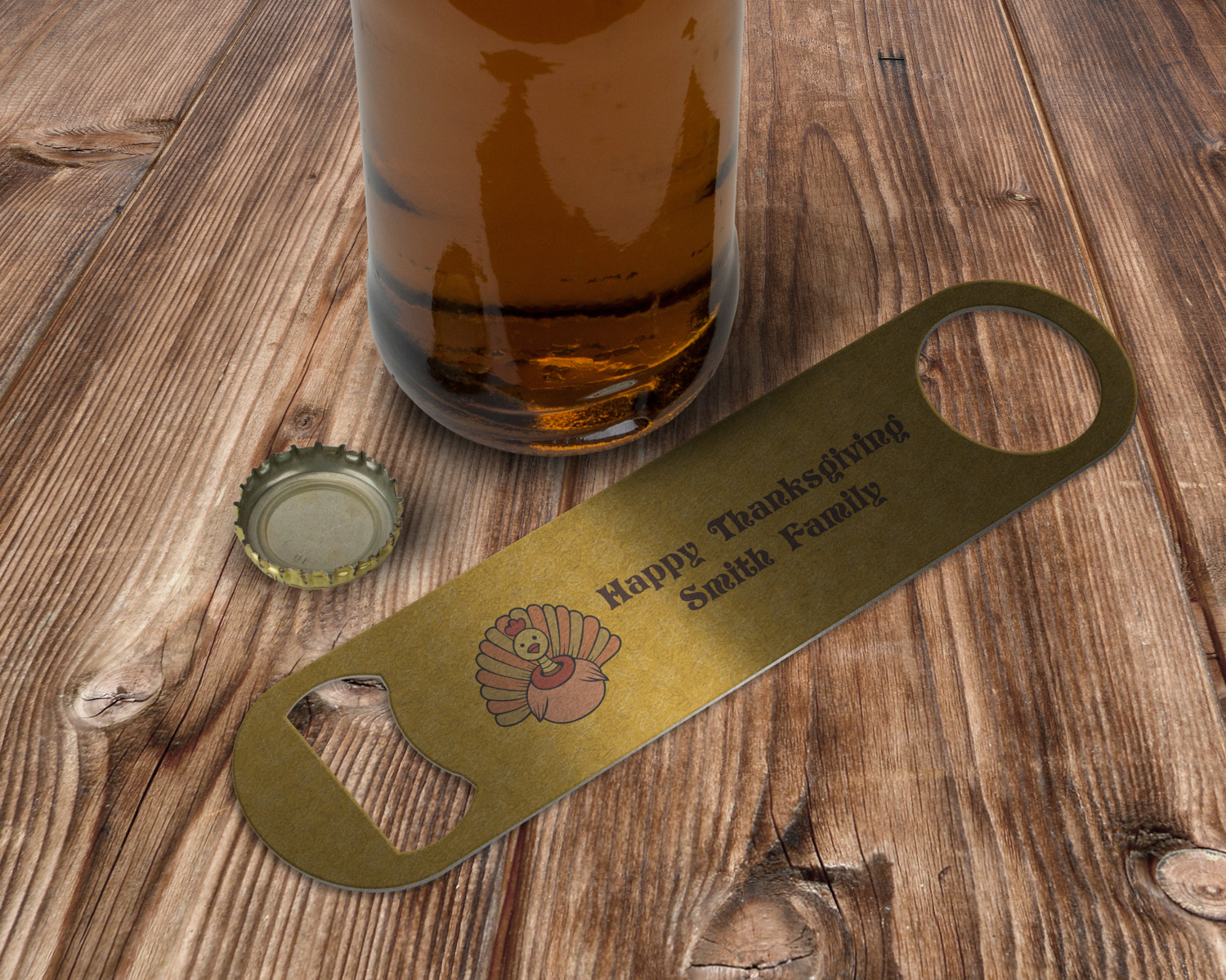 Stop struggling with the caps or your bottled beverages by purchasing one of our personalized bottle openers! These wrench-like custom bar blades are built to last. Customize one for your home's bar, or as a practical gift for a loved one!