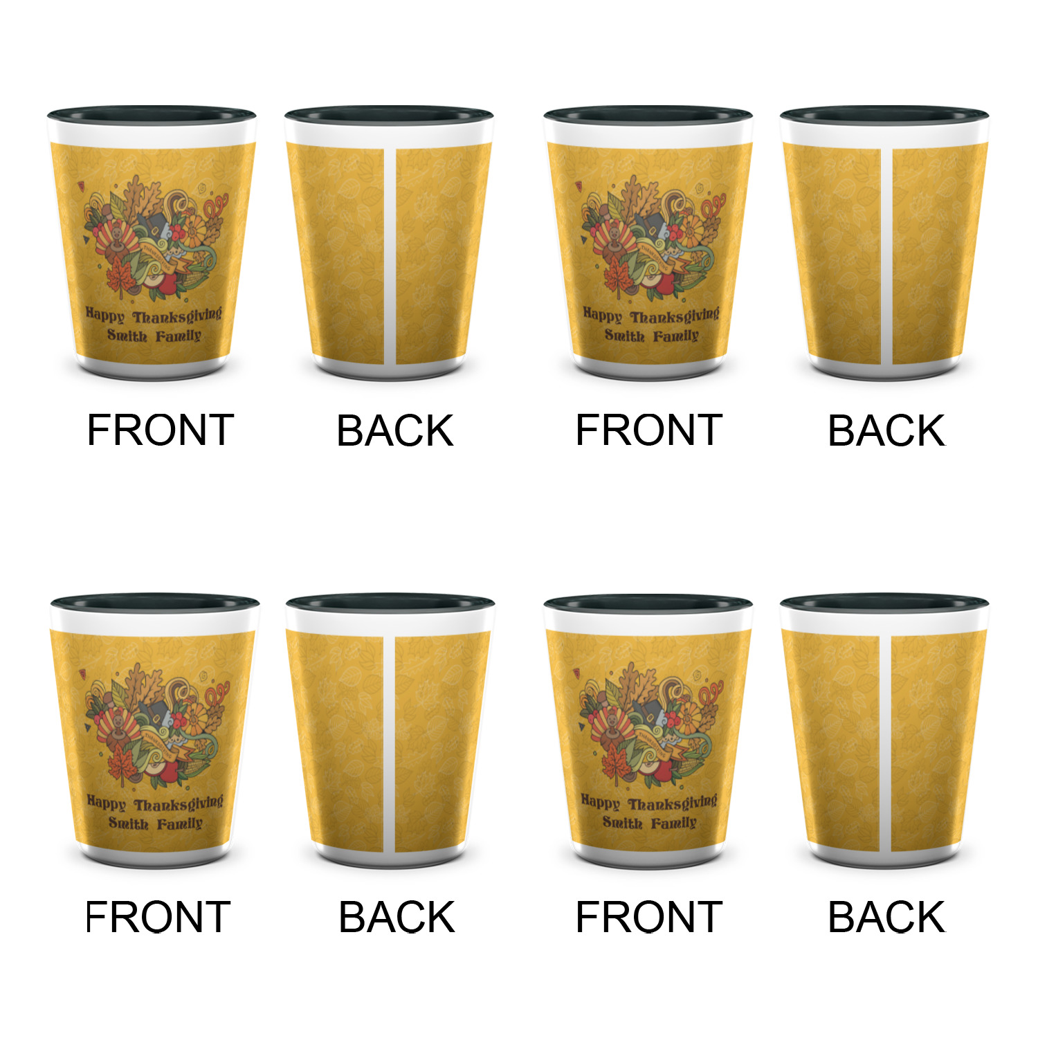 Made from ceramic these shot glasses are printed in full color with the design of your choice. These are a standard 1.5oz size and stand 2.25" tall. Available in a full white ceramic or a two-tone with a black color inside the shot glass. Buy a single or a set of 4, all of which can be designed separately to get you just what you want and need.