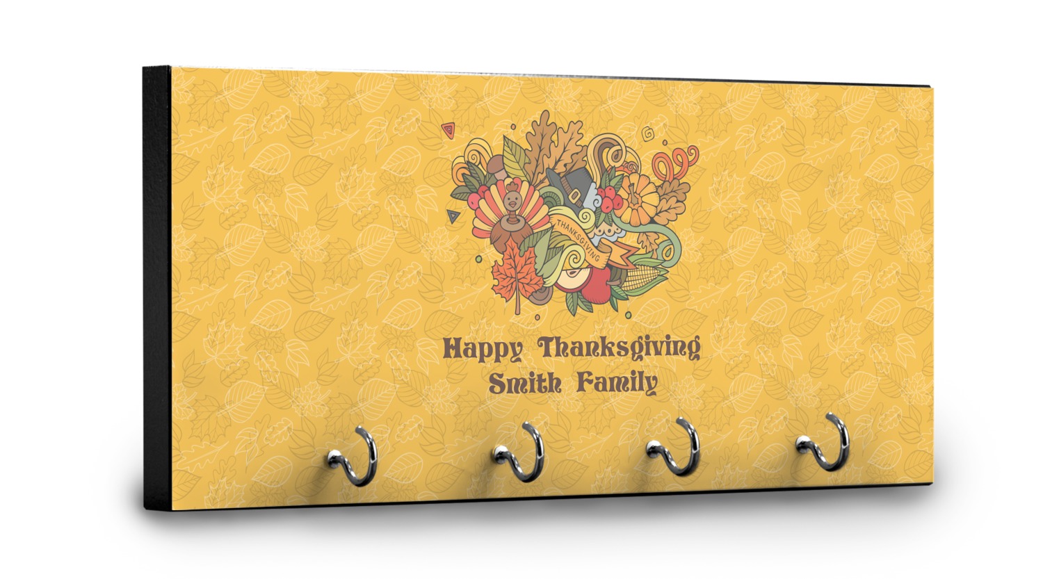 This 11" x 5" key hanger is made of sturdy wood and has four metal hooks lining the bottom. This is the perfect size for a family with several drivers. Not only can you hang keys on it though, but pet leashes and other small items. The board is black on the sides and back and is printed with the design of your choice on the front.