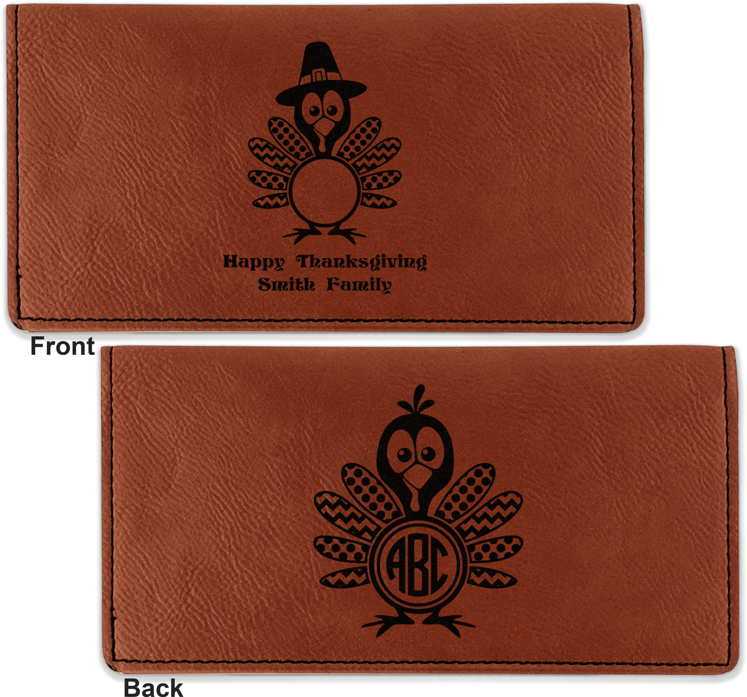 Go into our design center to start personalizing. Your checkbook cover will be laser engraved, making the graphic or text a black color. Choose a fun saying, monogram, or font to go on your checkbook cover. You have the opportunity to do it double or single sided.