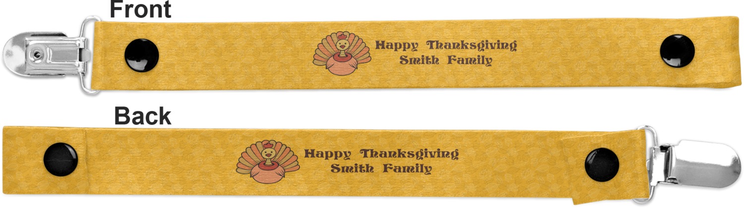 This personalized pacifier clip is the ideal size and measures at approximately 7.5 inches in length, when either end is snapped closed. On one end, you'll find a snap button. This button of your baby's pacifier holder is what can be attached to their pacifier to hold is securely in place. Simply open the snap, slip it through the pacifier opening, and snap it back into place. On the opposite end of this baby pacifier holder, you'll find a metal clip that can secure to a baby's collar or sleeve. This clip ensures that the strap stays in place, and that your baby's pacifier is always on hand.